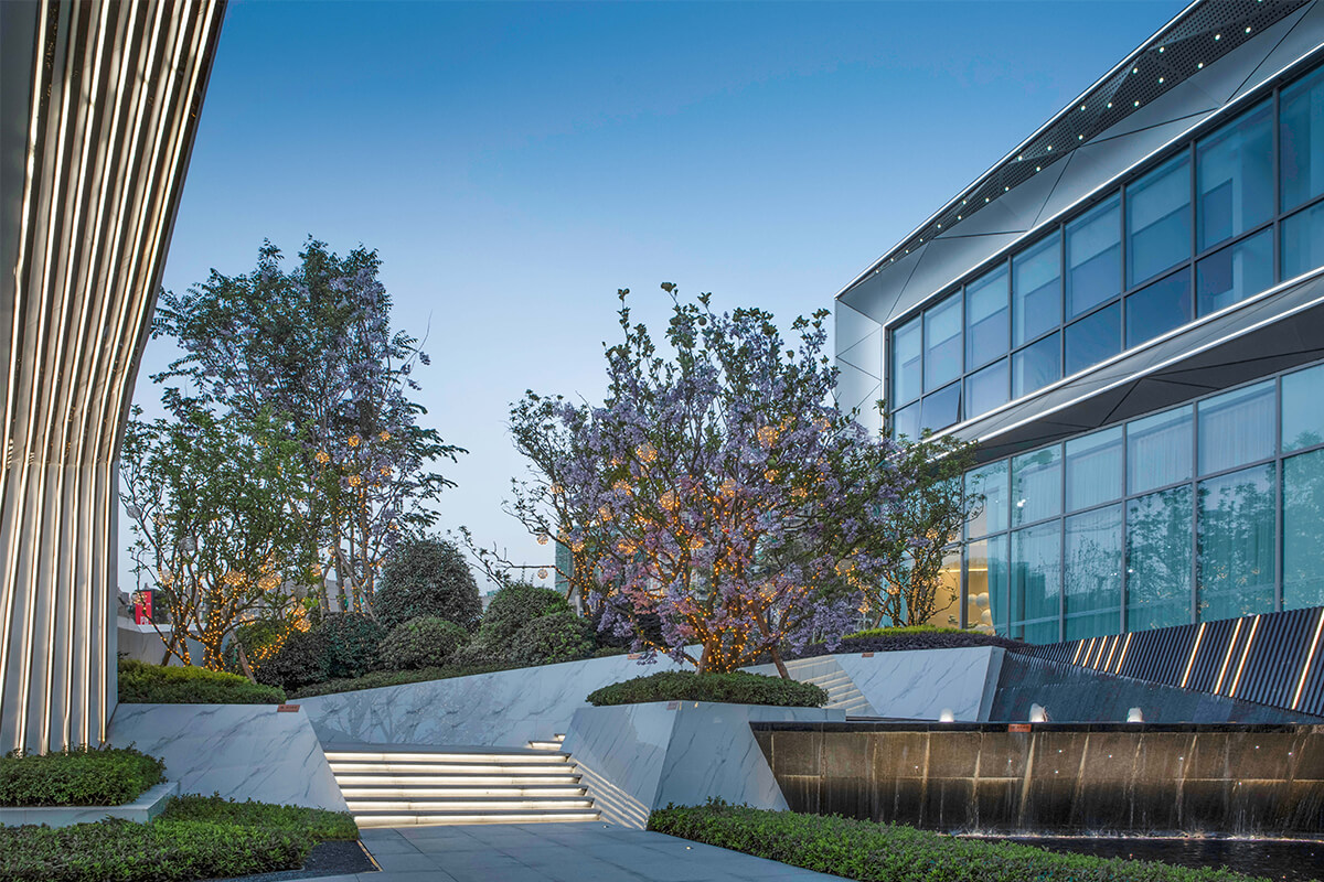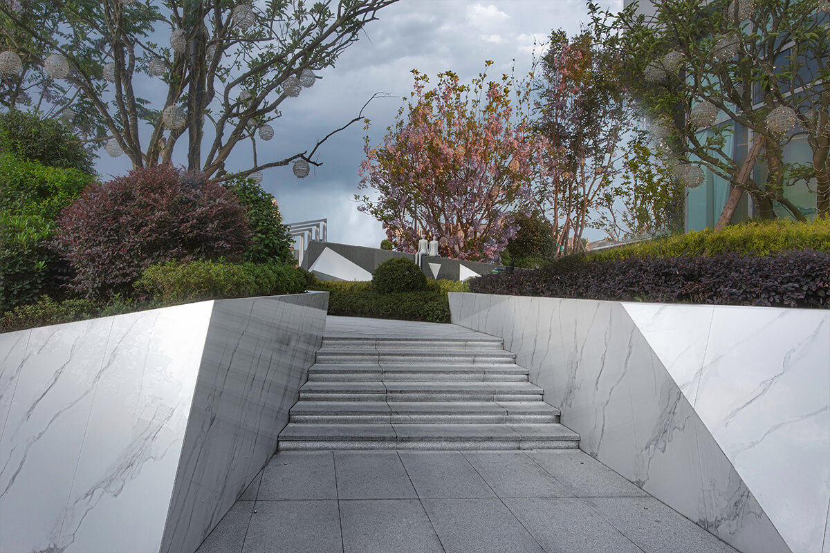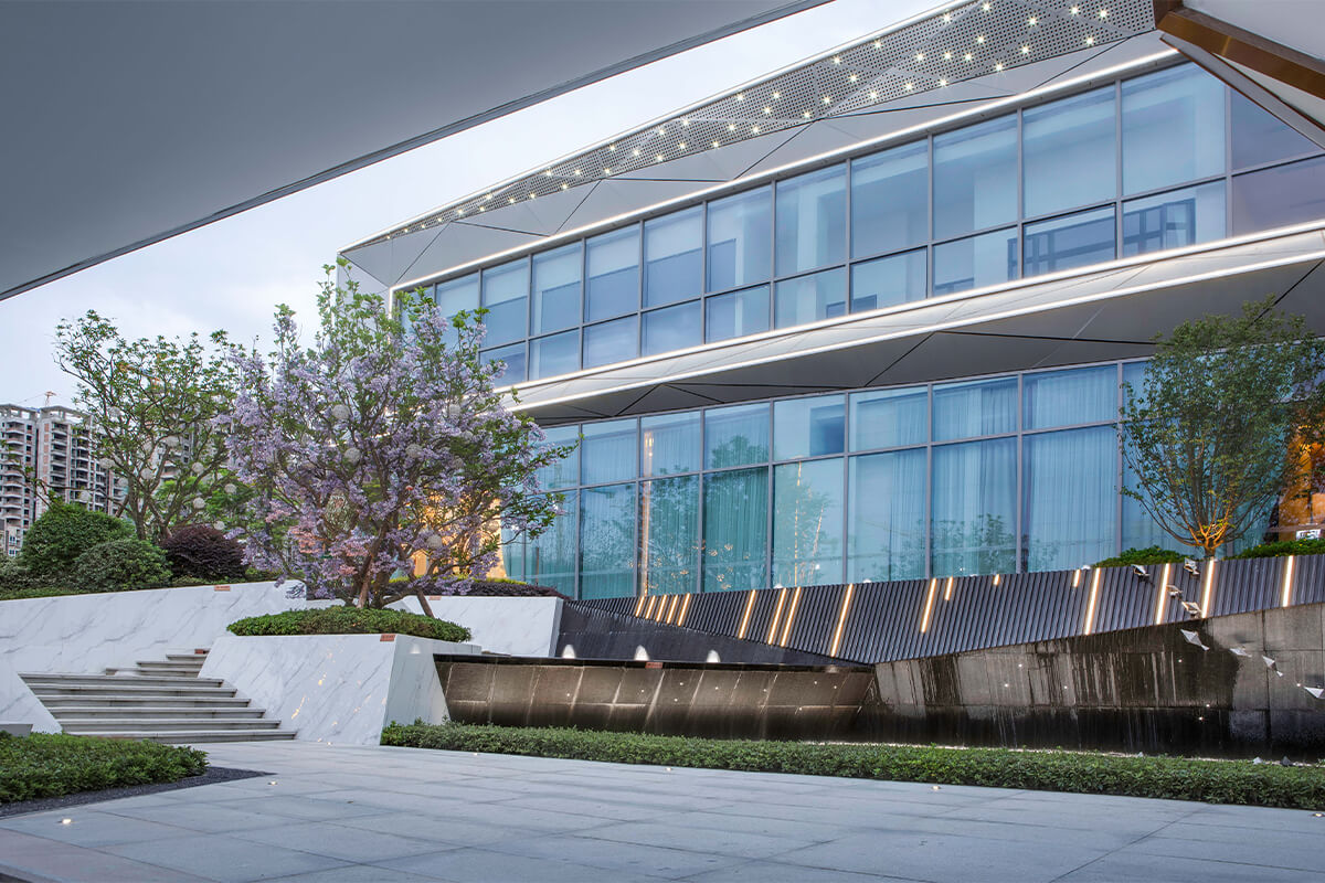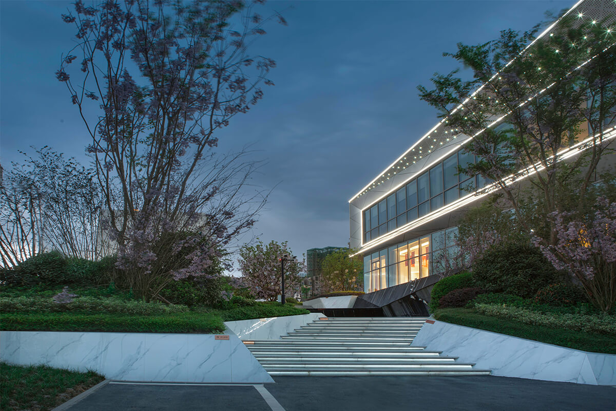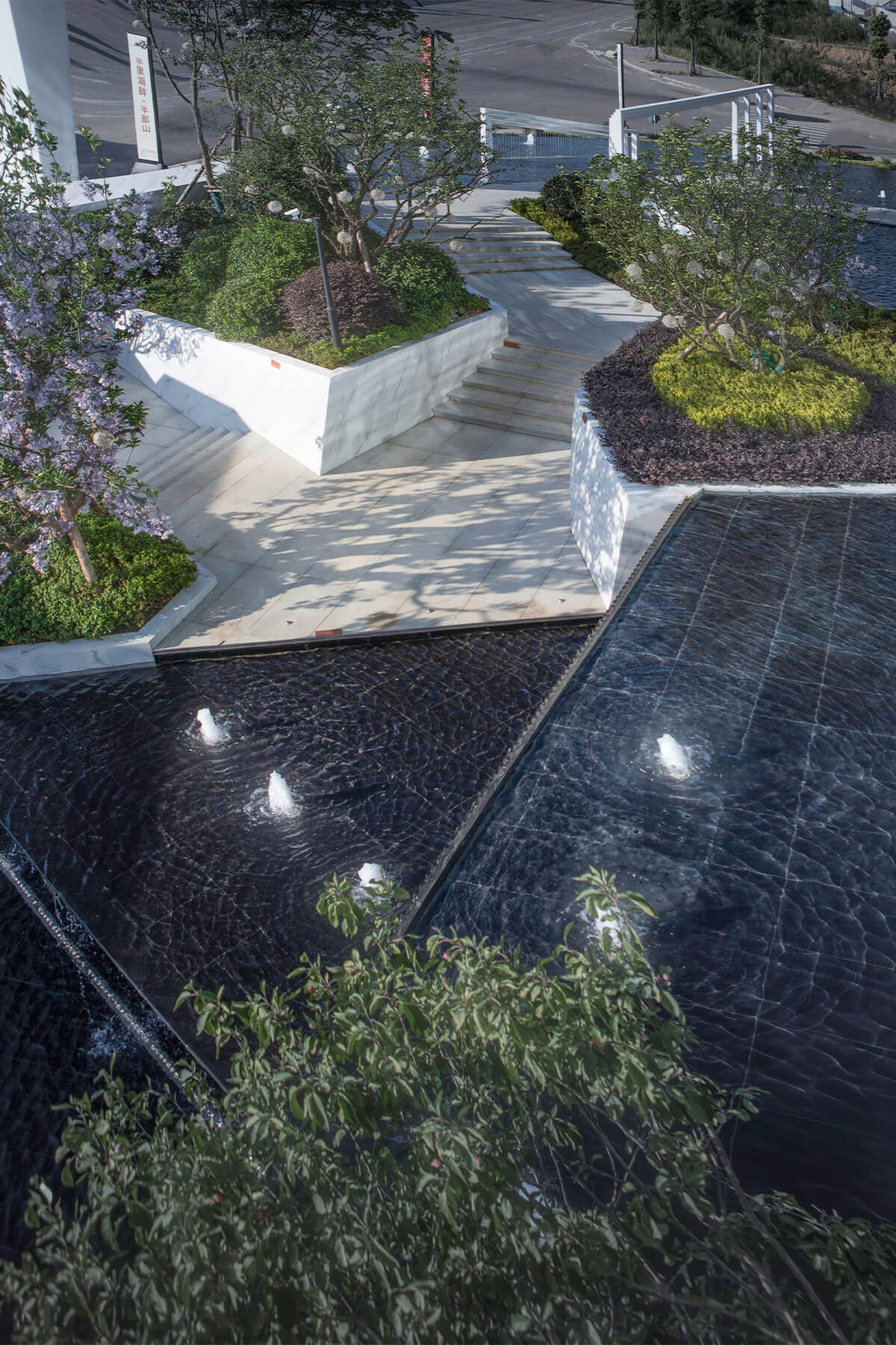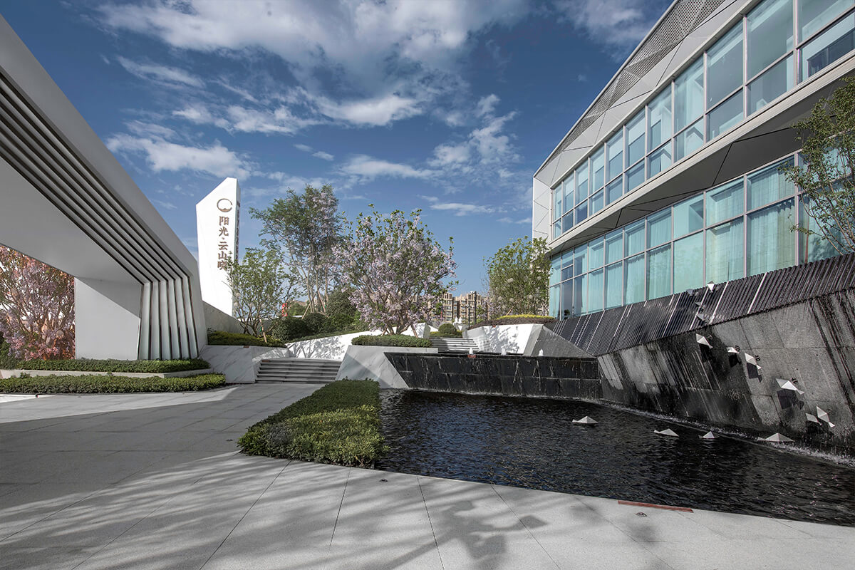 我们常常在形容一座城市太过于现代化、充斥着了无生趣的高楼大厦时,会用到一个词——水泥森林。 林立的高楼,在高度上早已超过任何一棵大树能达到的程度,只不过,它们是钢筋和水泥构建起来的超现实魔幻世界。在都市中伫立的水泥森林常常让我们感到无法喘息,只期盼有一场让紧绷的神经松弛下来的奇遇。 云山晓结合东方精神与现代语境,阐释一种如云一般飘逸灵动,轻盈自在的川派生活。过程中设计师不断推敲打磨每一个细节,从选材、打样、最后跟进,以保证云山晓最终的完美落地呈现,一砖一瓦,皆是诚意。 云山晓共有五个分区,区与区之间路线规划长度适宜,相连成环,避免重复景观造成的视觉疲劳,景观层次丰富,参与体验感强。