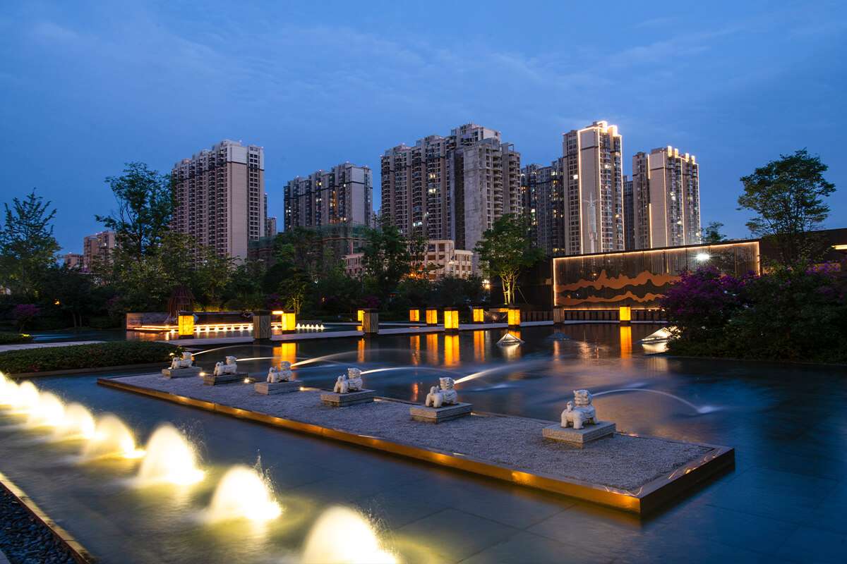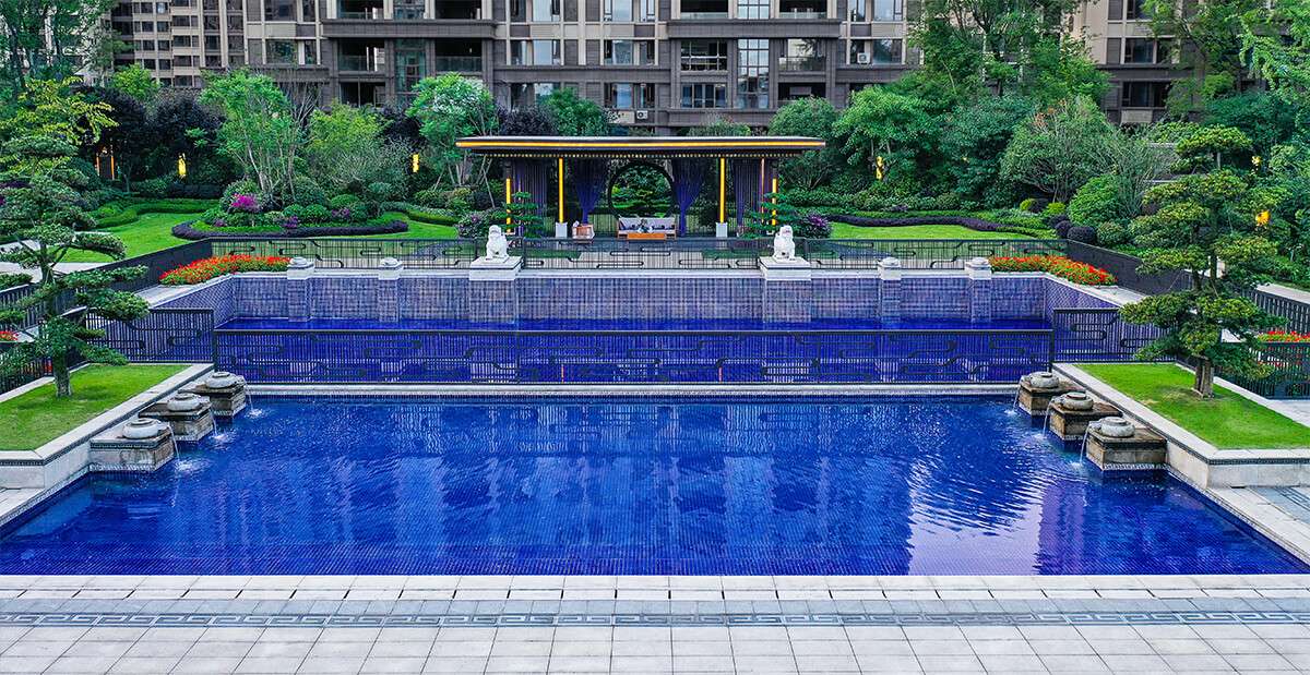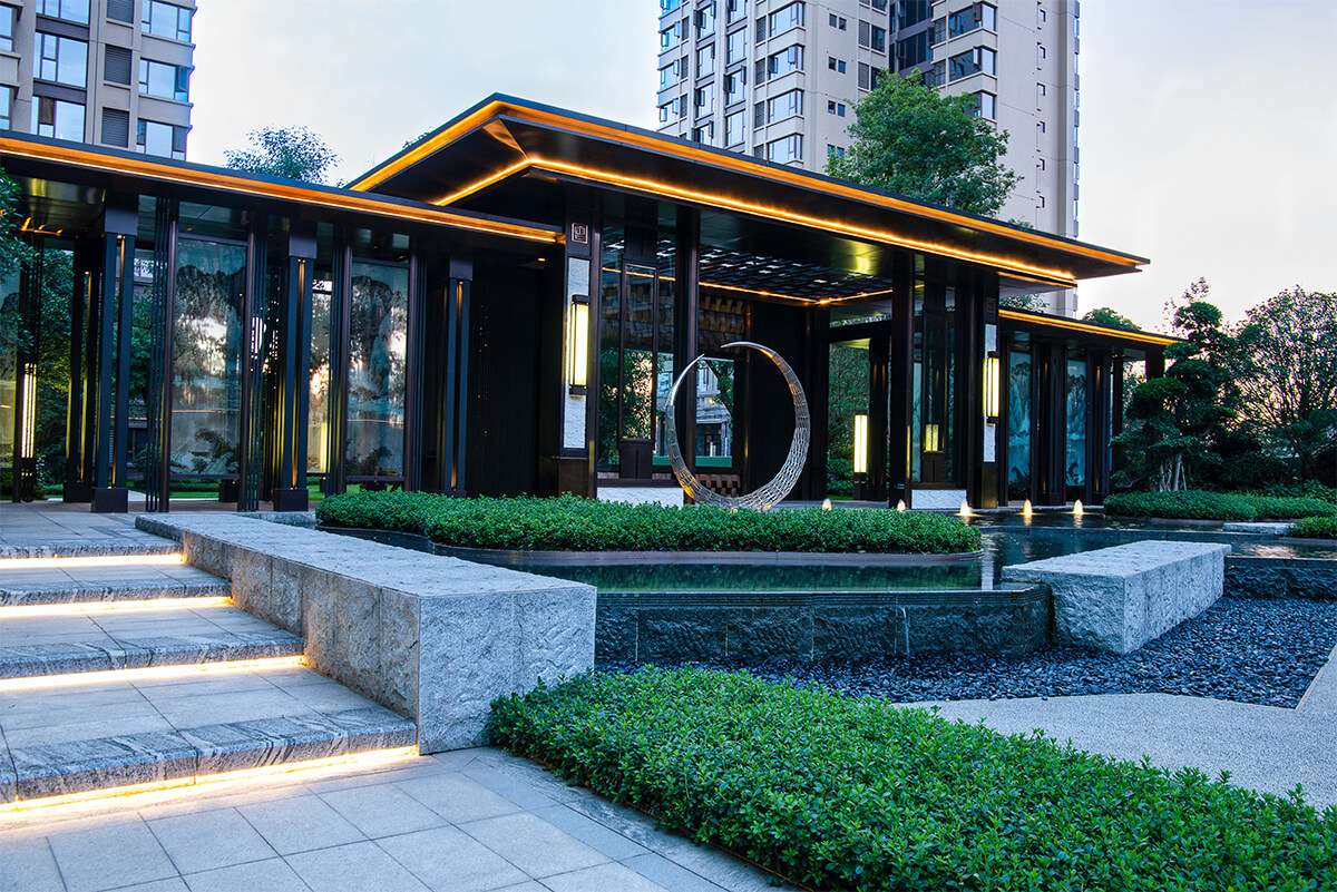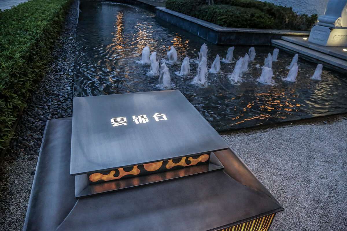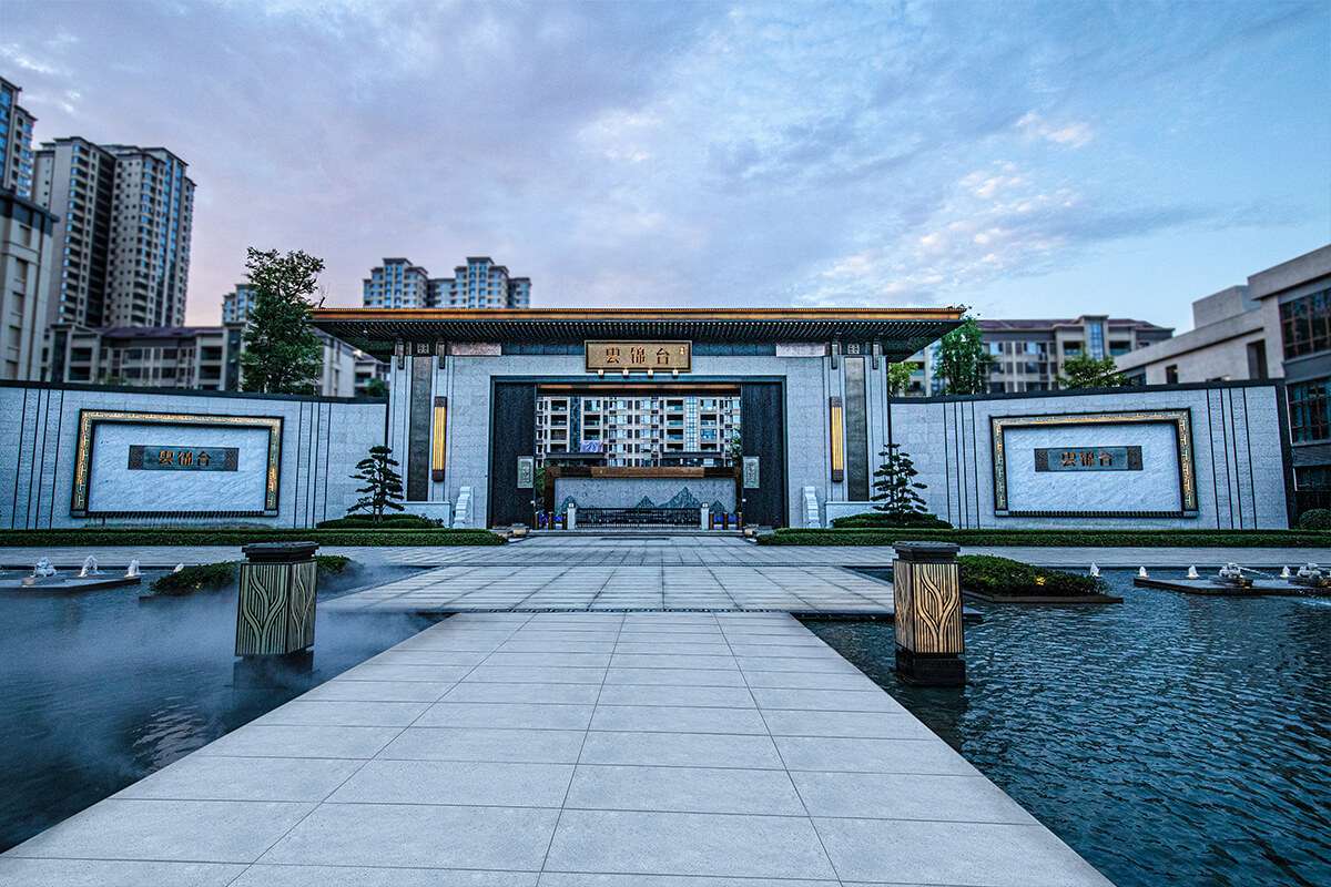 云锦台景观风格为新中式风格,空间方正大气端庄。 景观配套成人、儿童泳池,园区篮球场,羽毛球场,乒乓球场,全龄儿童活动空间。功能设施一应俱全 主景观分为三轴线、三亭廊、五景墙、九节点。 我们秉承对景观与自然的敬畏之心,雕琢属于眉山这座温润如玉的城市的府门宅邸,把一切关于美好的想象凝炼为现实,聆听独属于中式设计的正声雅音。