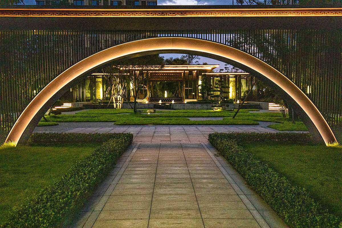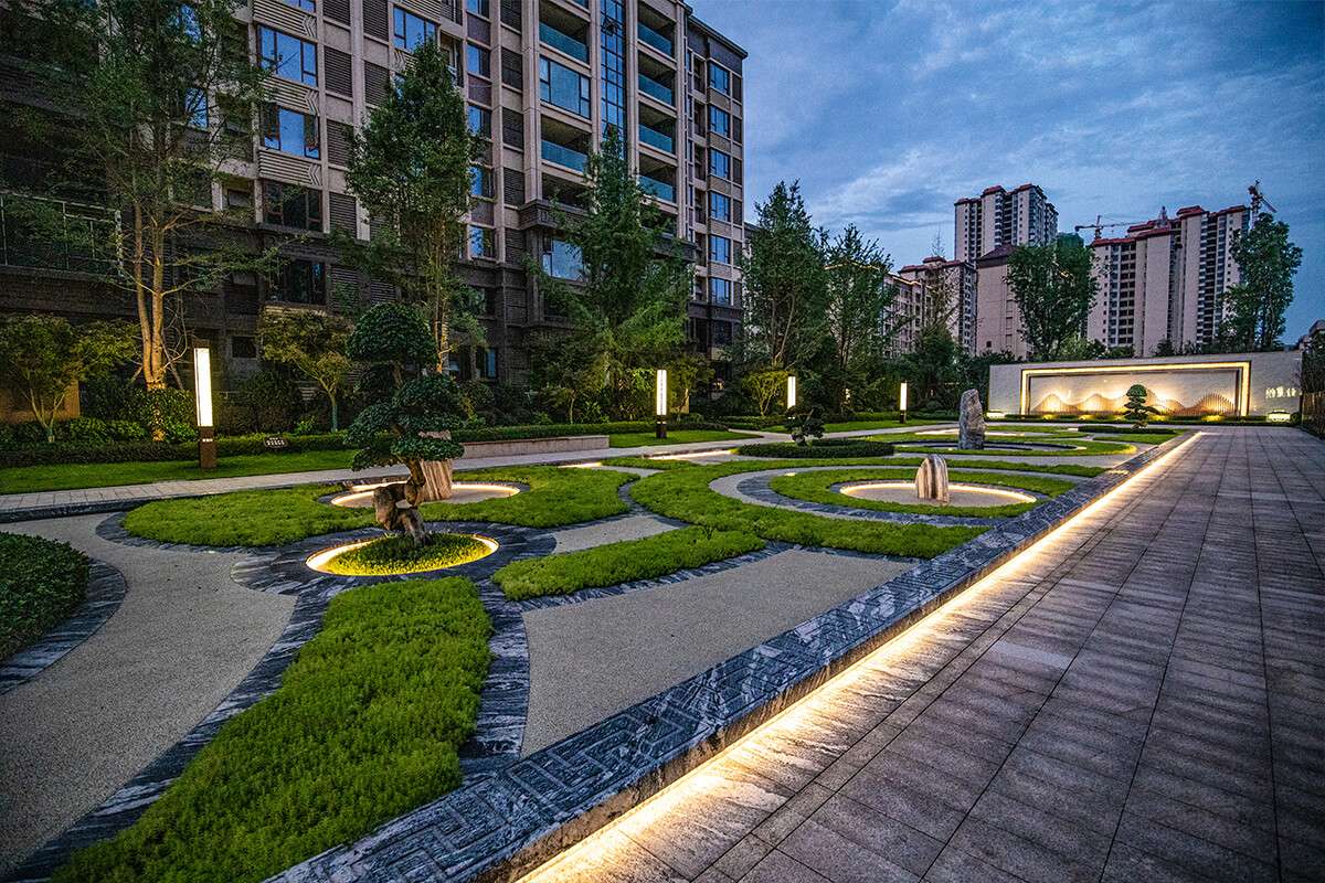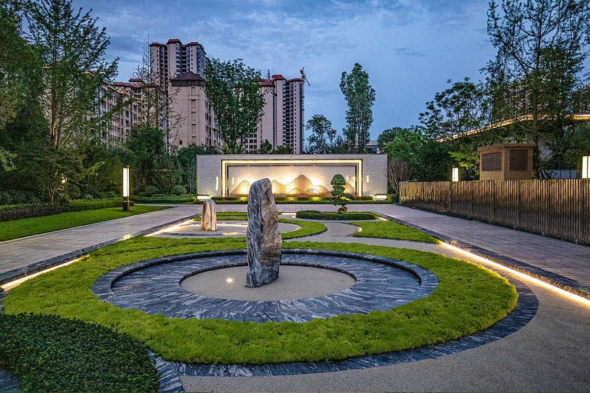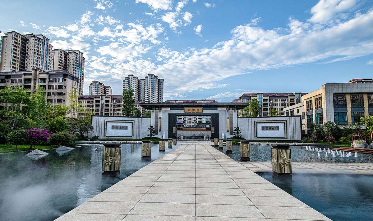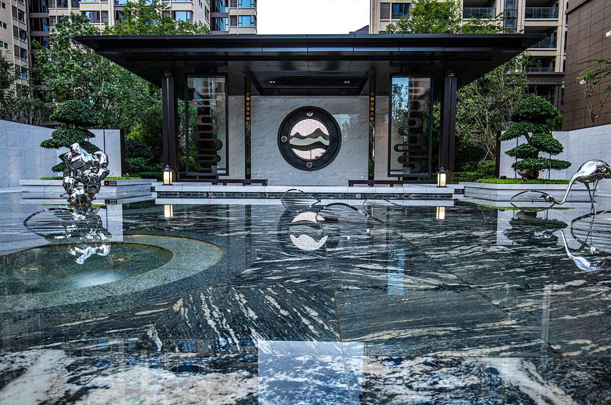 云锦台景观风格为新中式风格,空间方正大气端庄。 景观配套成人、儿童泳池,园区篮球场,羽毛球场,乒乓球场,全龄儿童活动空间。功能设施一应俱全 主景观分为三轴线、三亭廊、五景墙、九节点。 我们秉承对景观与自然的敬畏之心,雕琢属于眉山这座温润如玉的城市的府门宅邸,把一切关于美好的想象凝炼为现实,聆听独属于中式设计的正声雅音。