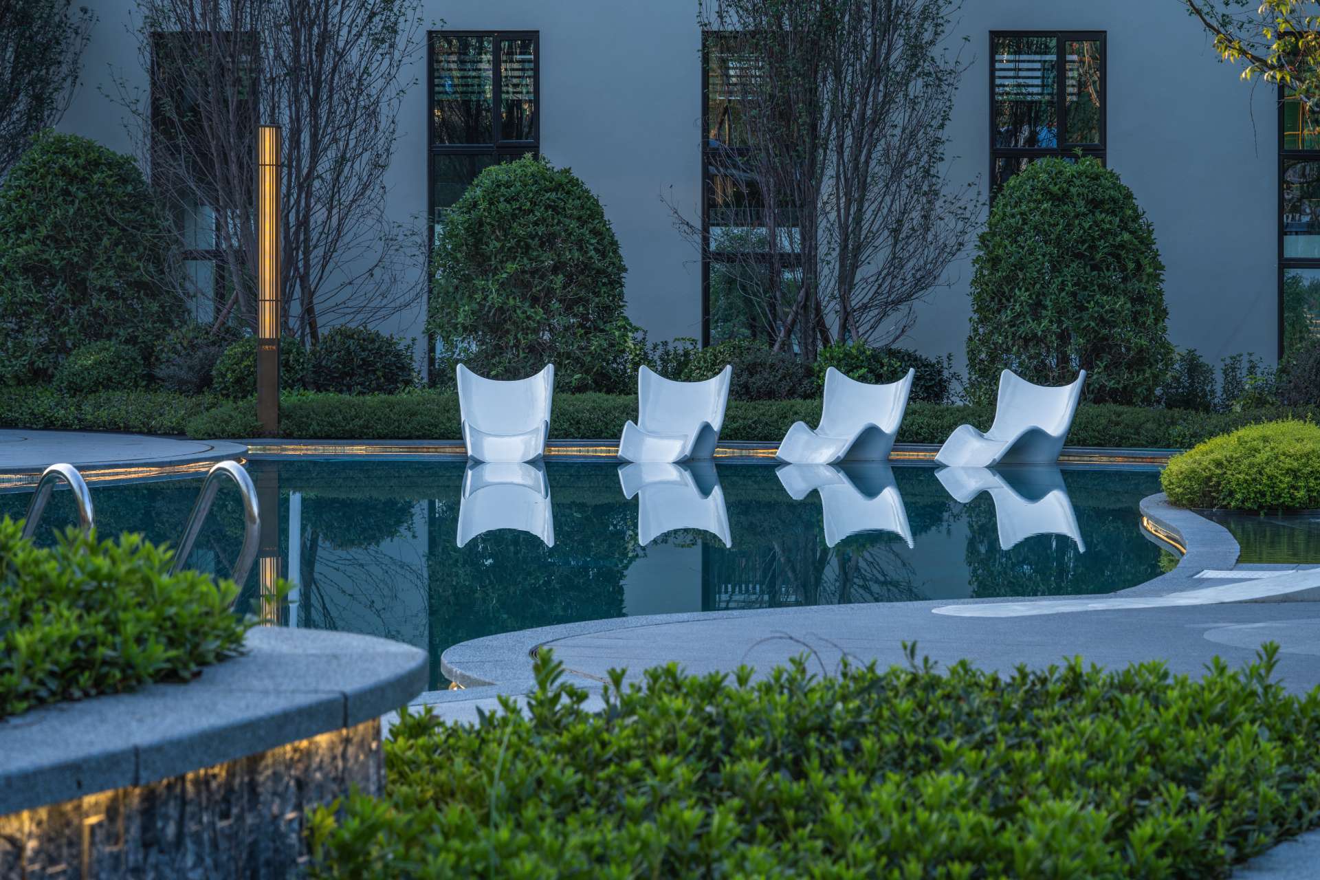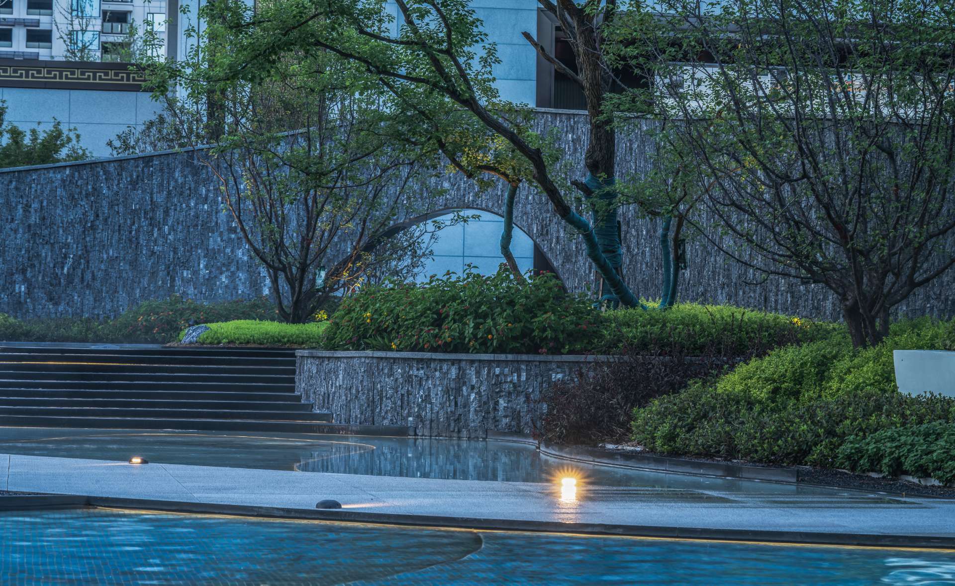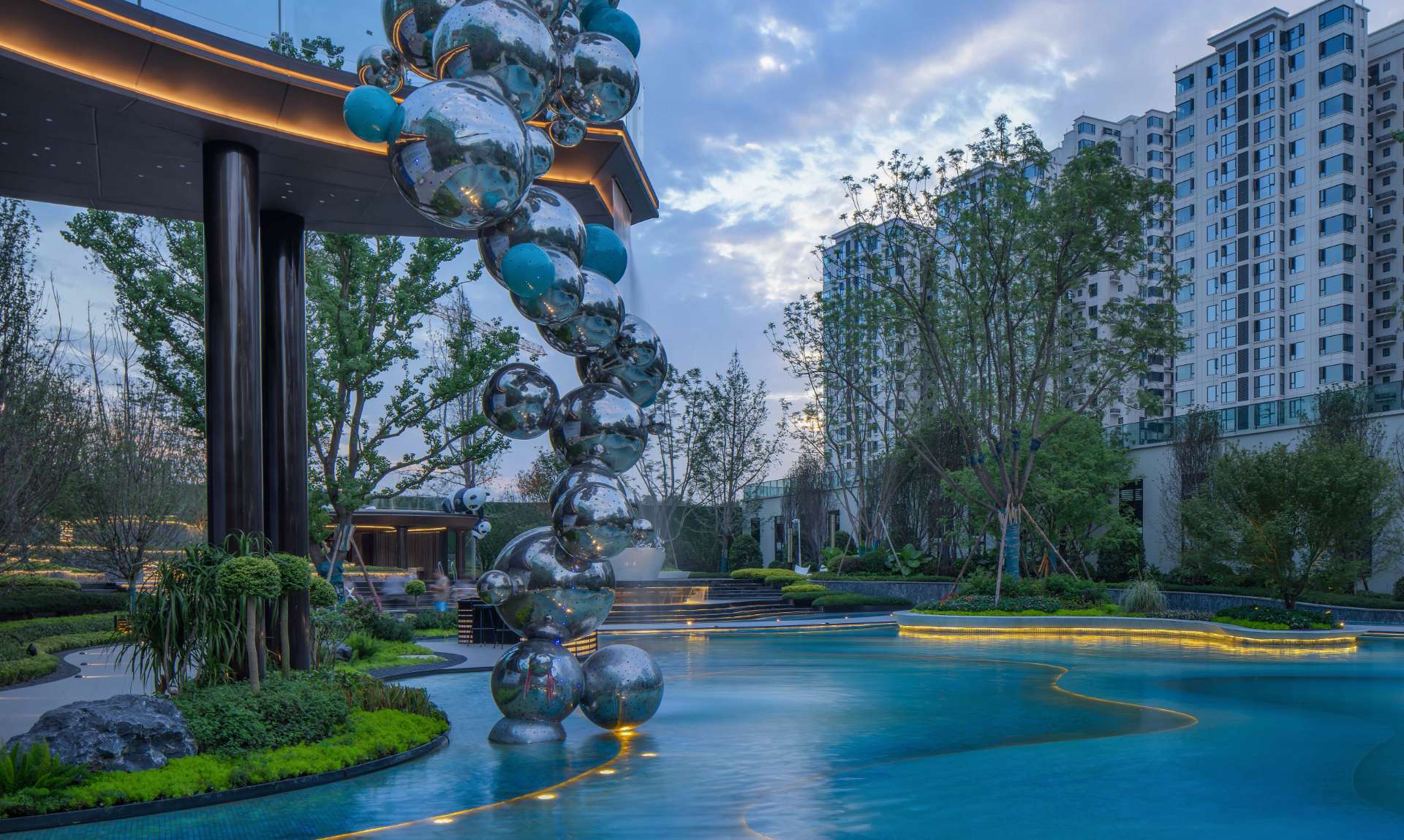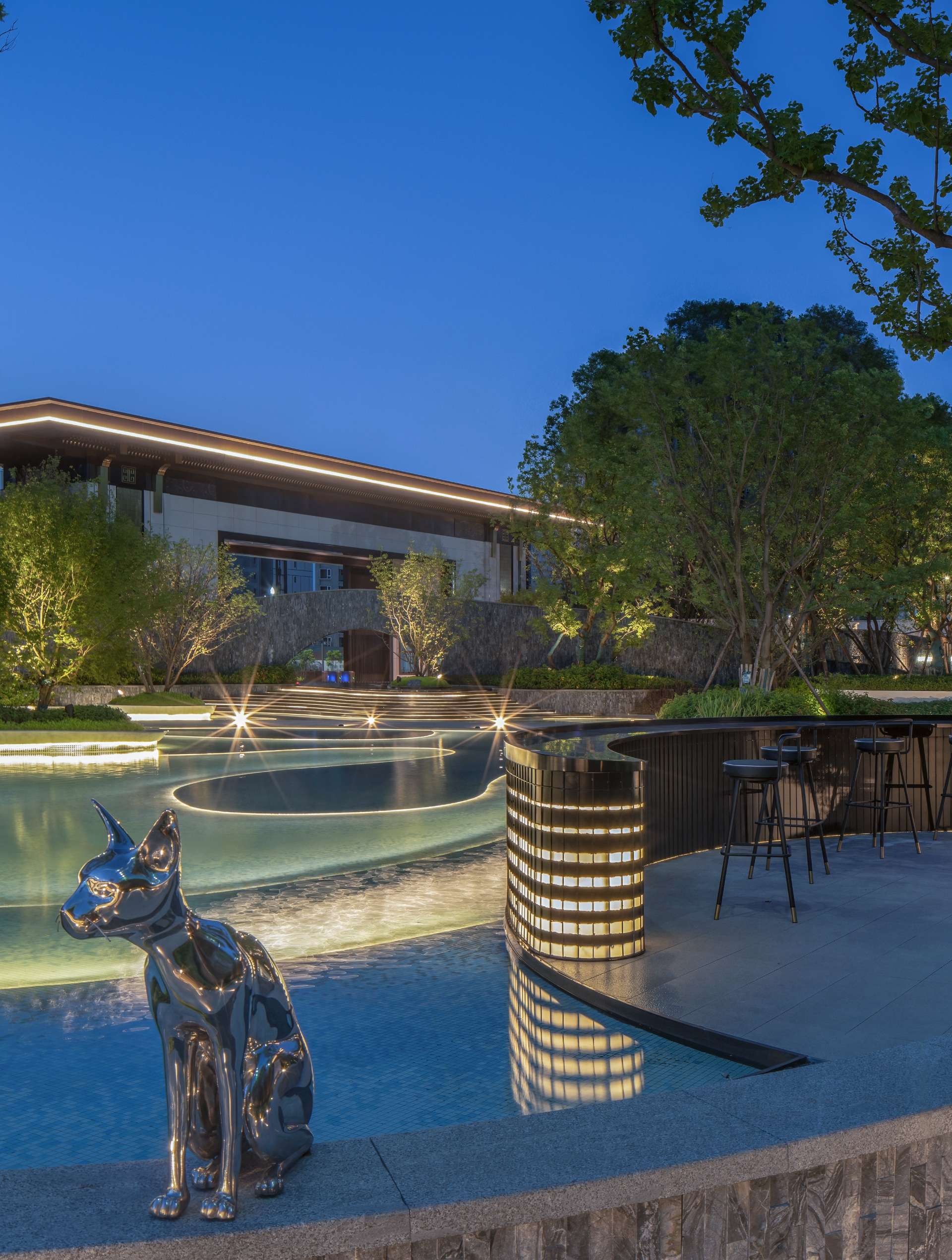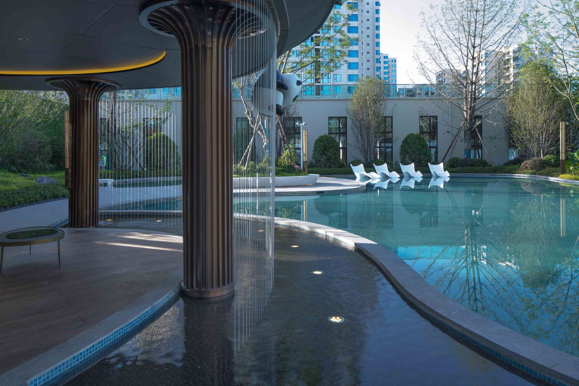 奔走于繁忙都市中,一份闲适,一份惬意便是现代都市人的心之向往。 当现代中式遇上山水度假,用现代的手法去演绎现代度假生活,于空间中对城市山水的呈现融于生活体验之中,于场地中寻得一份悠闲自然的心境。 以自然中山、林、溪、谷之景,与场地相互融合,唤起居者视觉、听觉、触觉和内心的连锁变化。 通过“入山”“探谷”“游溪”“玩水”,打造多重主题、多样空间、多种氛围的景观空间。 采用东方极简的方式,塑造山水人居空间,还原生活的本真,打造理想人居。