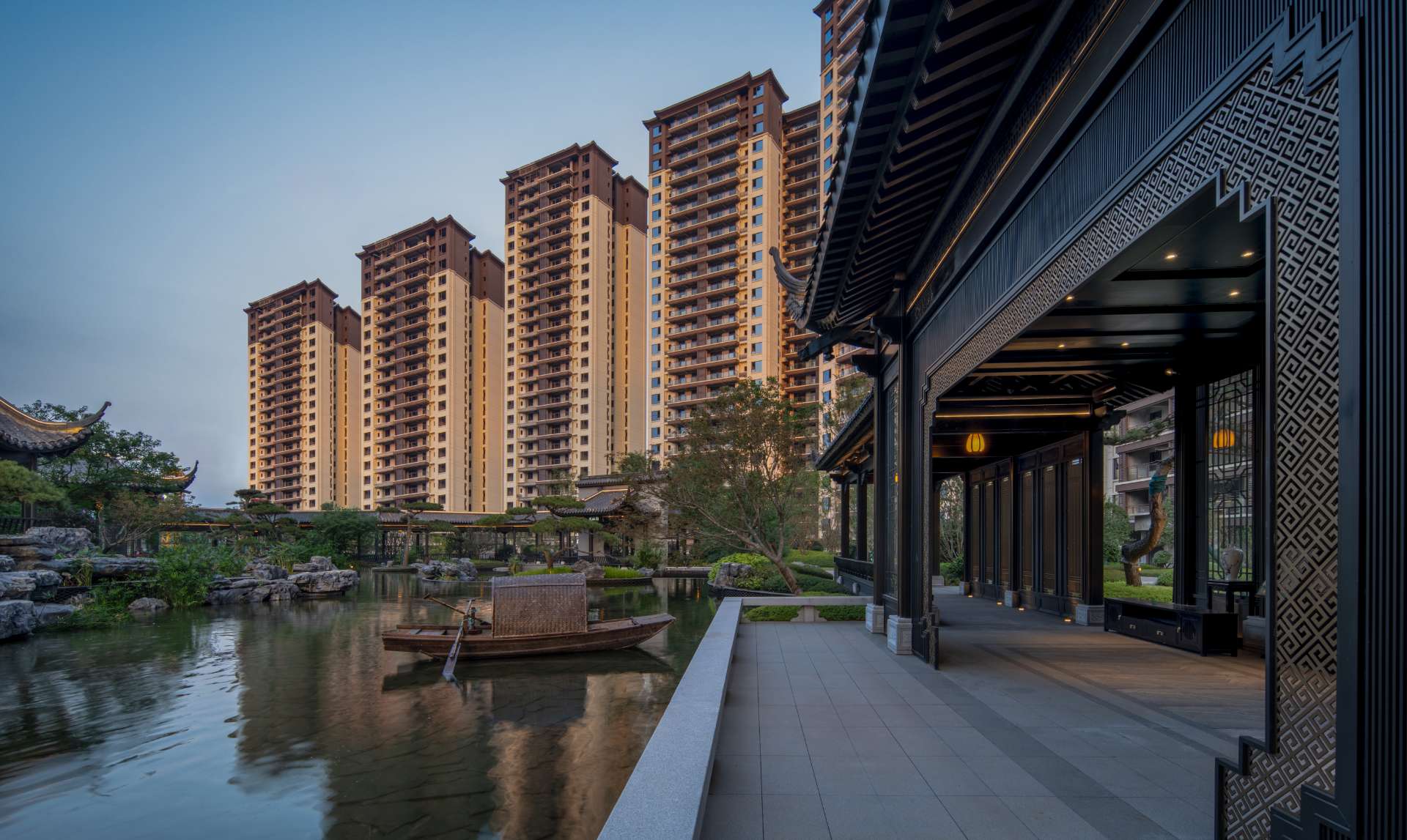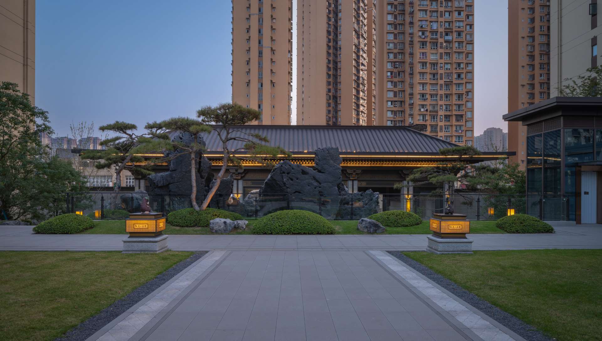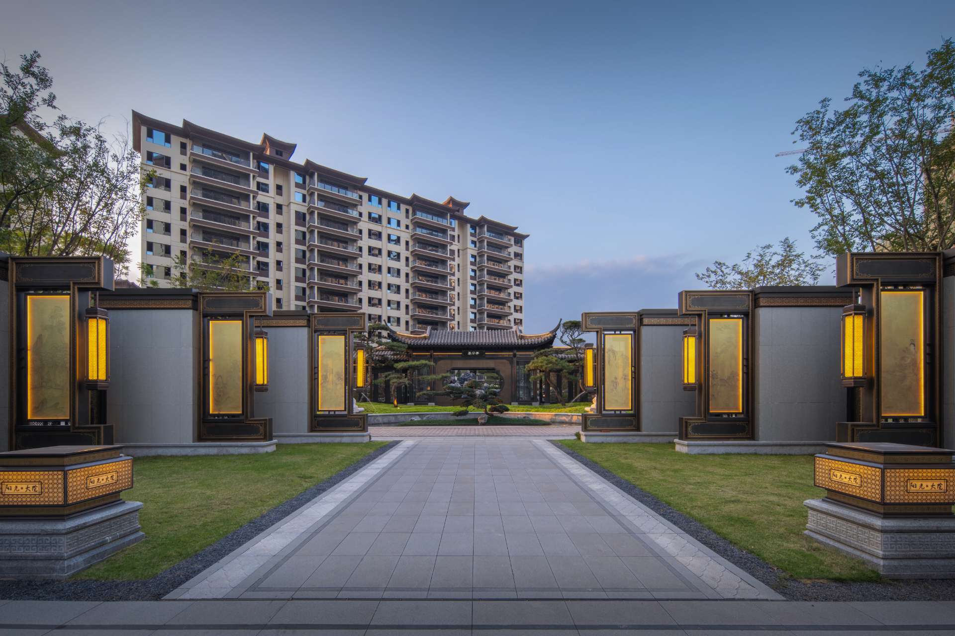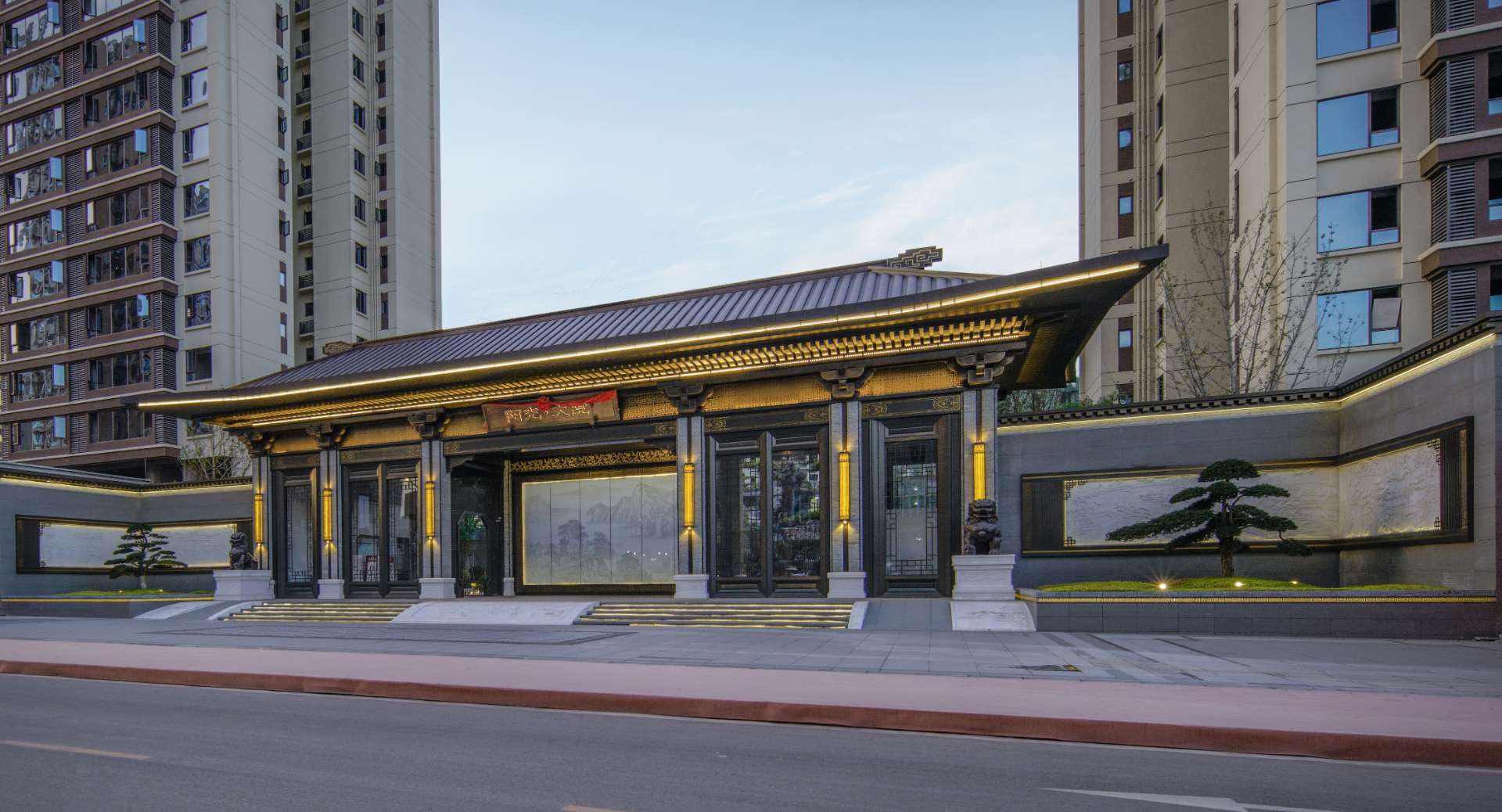 项目位于四川·自贡沿滩新城核心区——沿滩新城两湖大桥旁,是依托自贡百年盐商府邸“王家大院”打造的王家大院文化旅游综合体,规划有盐商文化公园、盐帮菜博物馆、风情商业街区、特色文创区、文化住宅和王家大院遗址六大板块。本次拟设计和呈现的是文化住宅板块。 王家大院是盐商王和甫弟兄5人为纪念父亲王子诚所建的私家府邸,谓曰“子诚公祠”,外人称之为“王家大院”,距今已有110多年历史。王家大院面西南而建,三面环山,一面迎水。院内保存有基本完好的石雕、木雕和灰雕作品600余件,是盐商历史遗存保留较好的院落。2020年5月,王家大院被自贡市人民政府公布为自贡市第一批井盐历史文化遗迹。文化底蕴深厚,王家大院承载的是盐商精神,展露的是第一部盐业的兴衰史。 结合王家大院“结庐在人境,而无车马喧”的儒商文化,以及客户需求,提取出府、苑文化。通过府(礼序空间结构)+苑(风雅生活场所),将现代设计手法与东方人文美学凝练于一院之中,营造出一座川南核心地域上的尊贵府园。 以府院建制格局、苑林生活场景为骨架,与中式园林、素雅审美相结合,打造五重归家礼序与风雅生活图景,尽享尊贵归家体验。