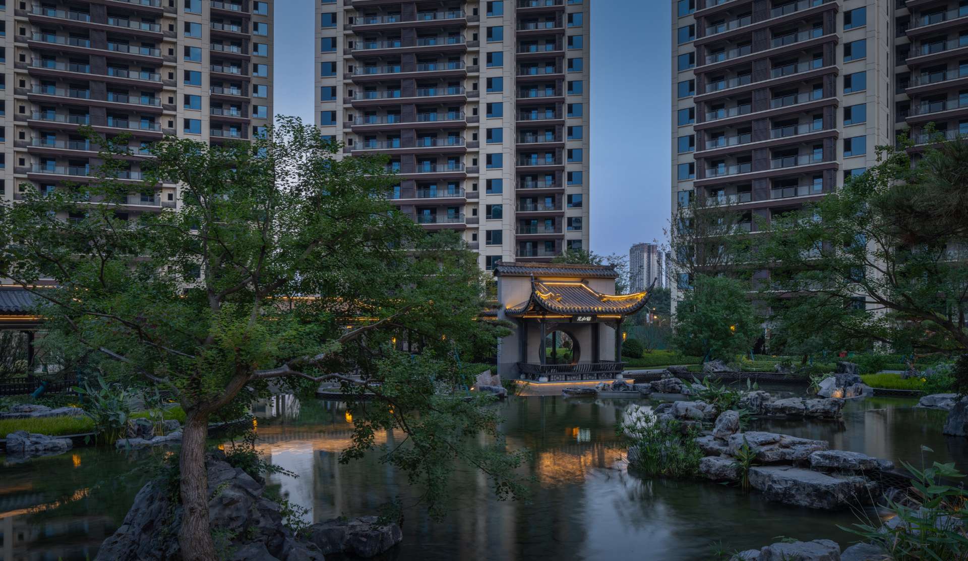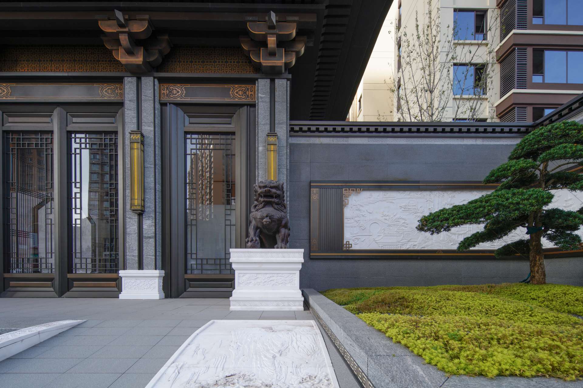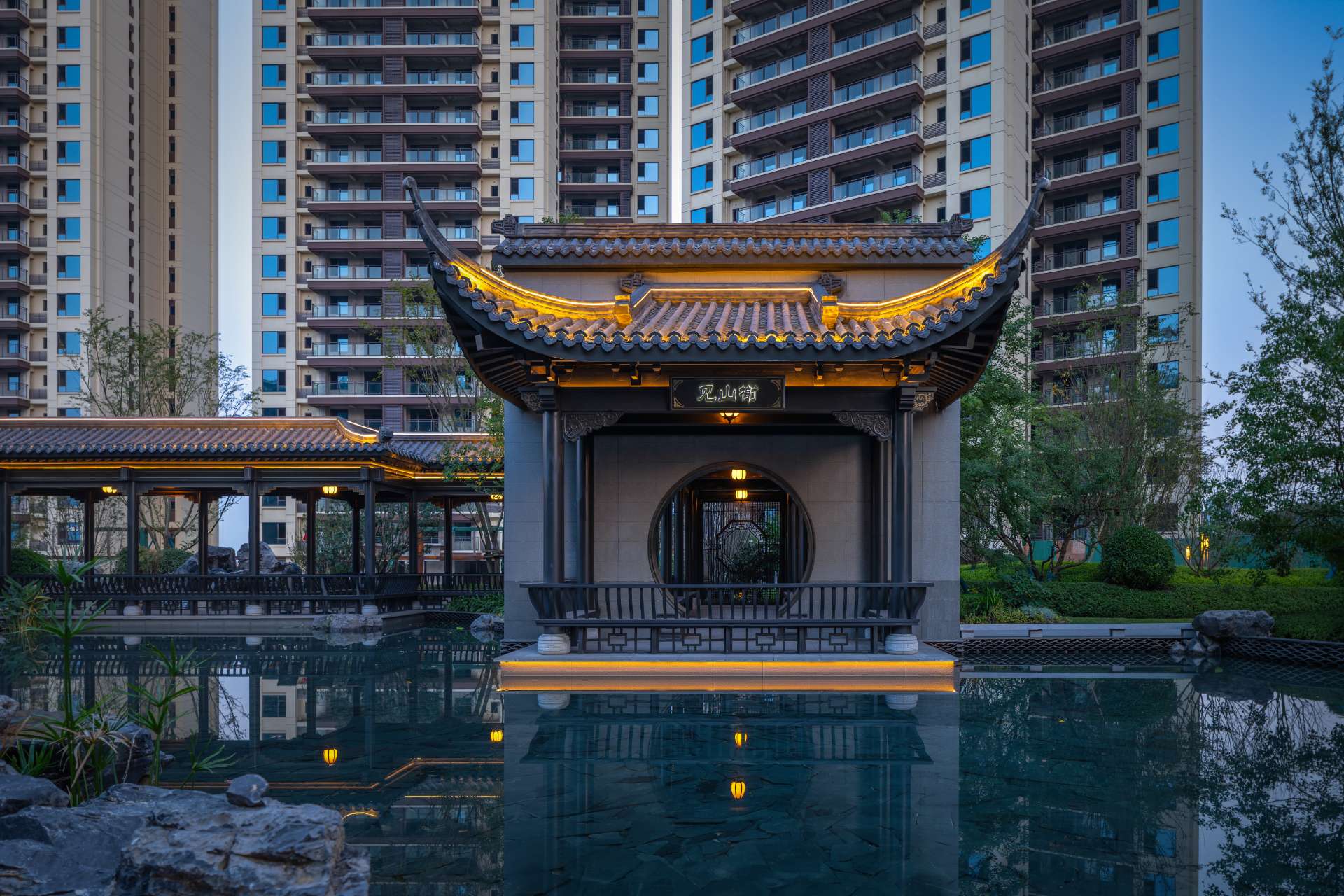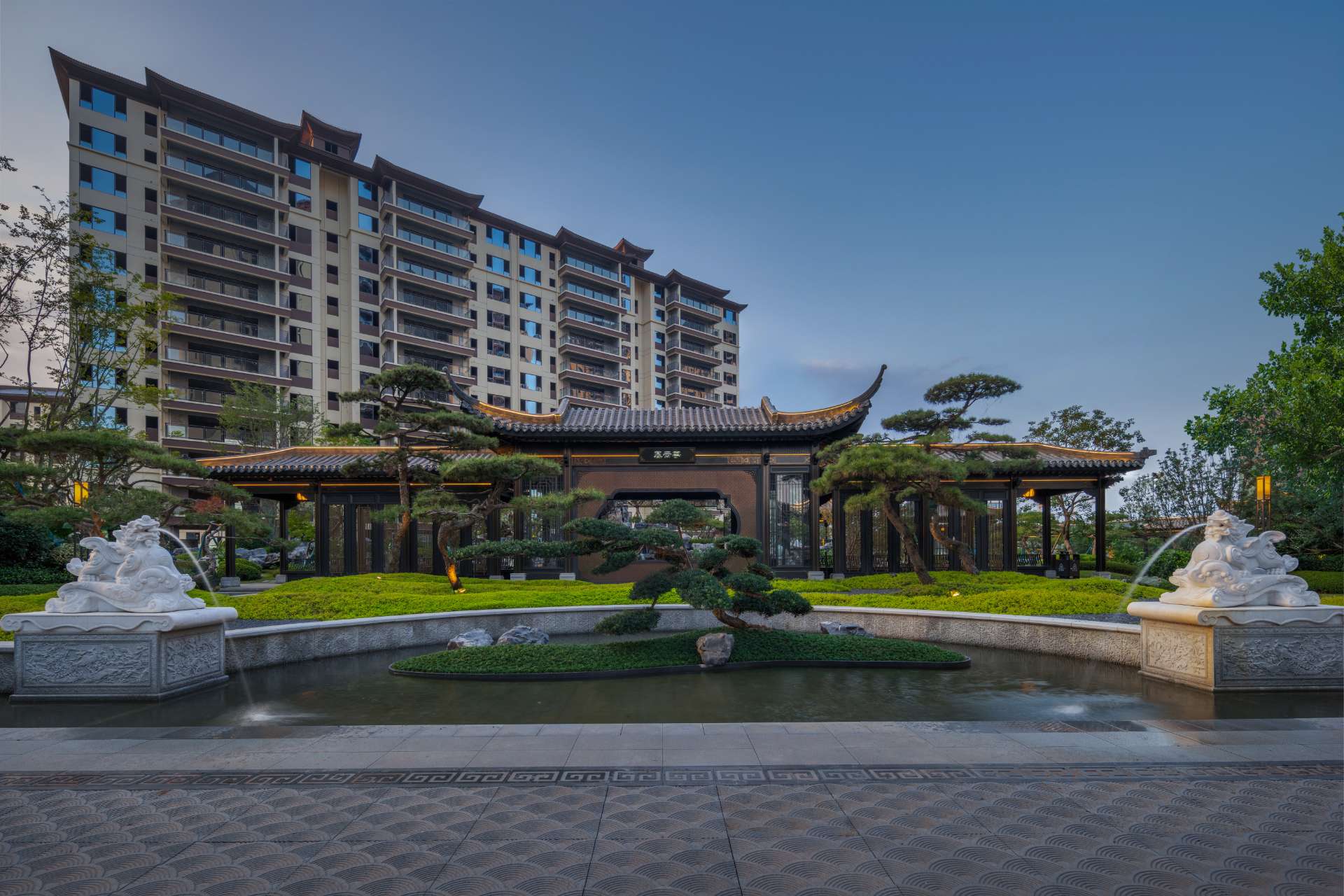 项目位于四川·自贡沿滩新城核心区——沿滩新城两湖大桥旁,是依托自贡百年盐商府邸“王家大院”打造的王家大院文化旅游综合体,规划有盐商文化公园、盐帮菜博物馆、风情商业街区、特色文创区、文化住宅和王家大院遗址六大板块。本次拟设计和呈现的是文化住宅板块。 王家大院是盐商王和甫弟兄5人为纪念父亲王子诚所建的私家府邸,谓曰“子诚公祠”,外人称之为“王家大院”,距今已有110多年历史。王家大院面西南而建,三面环山,一面迎水。院内保存有基本完好的石雕、木雕和灰雕作品600余件,是盐商历史遗存保留较好的院落。2020年5月,王家大院被自贡市人民政府公布为自贡市第一批井盐历史文化遗迹。文化底蕴深厚,王家大院承载的是盐商精神,展露的是第一部盐业的兴衰史。 结合王家大院“结庐在人境,而无车马喧”的儒商文化,以及客户需求,提取出府、苑文化。通过府(礼序空间结构)+苑(风雅生活场所),将现代设计手法与东方人文美学凝练于一院之中,营造出一座川南核心地域上的尊贵府园。 以府院建制格局、苑林生活场景为骨架,与中式园林、素雅审美相结合,打造五重归家礼序与风雅生活图景,尽享尊贵归家体验。