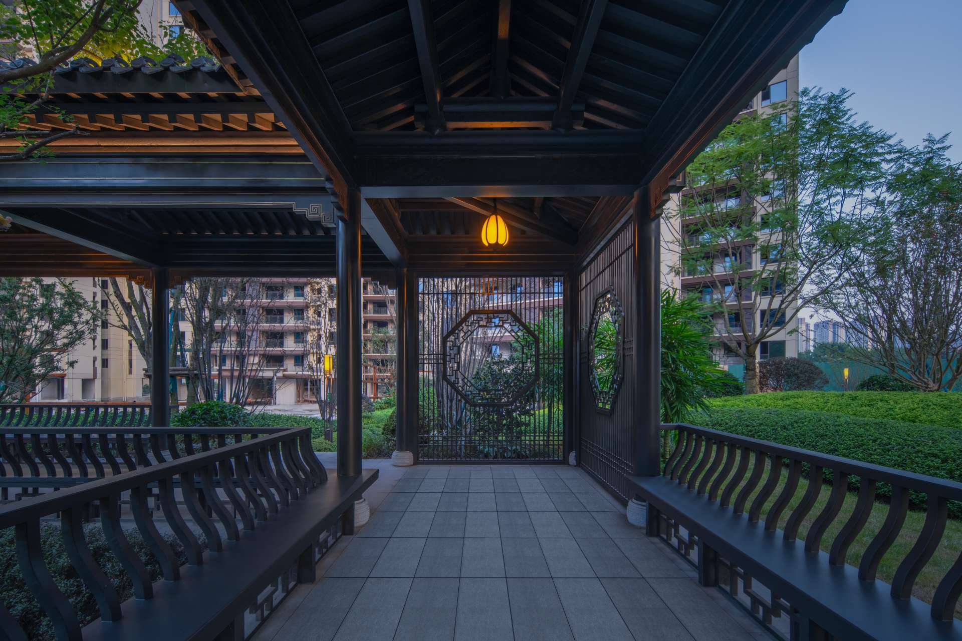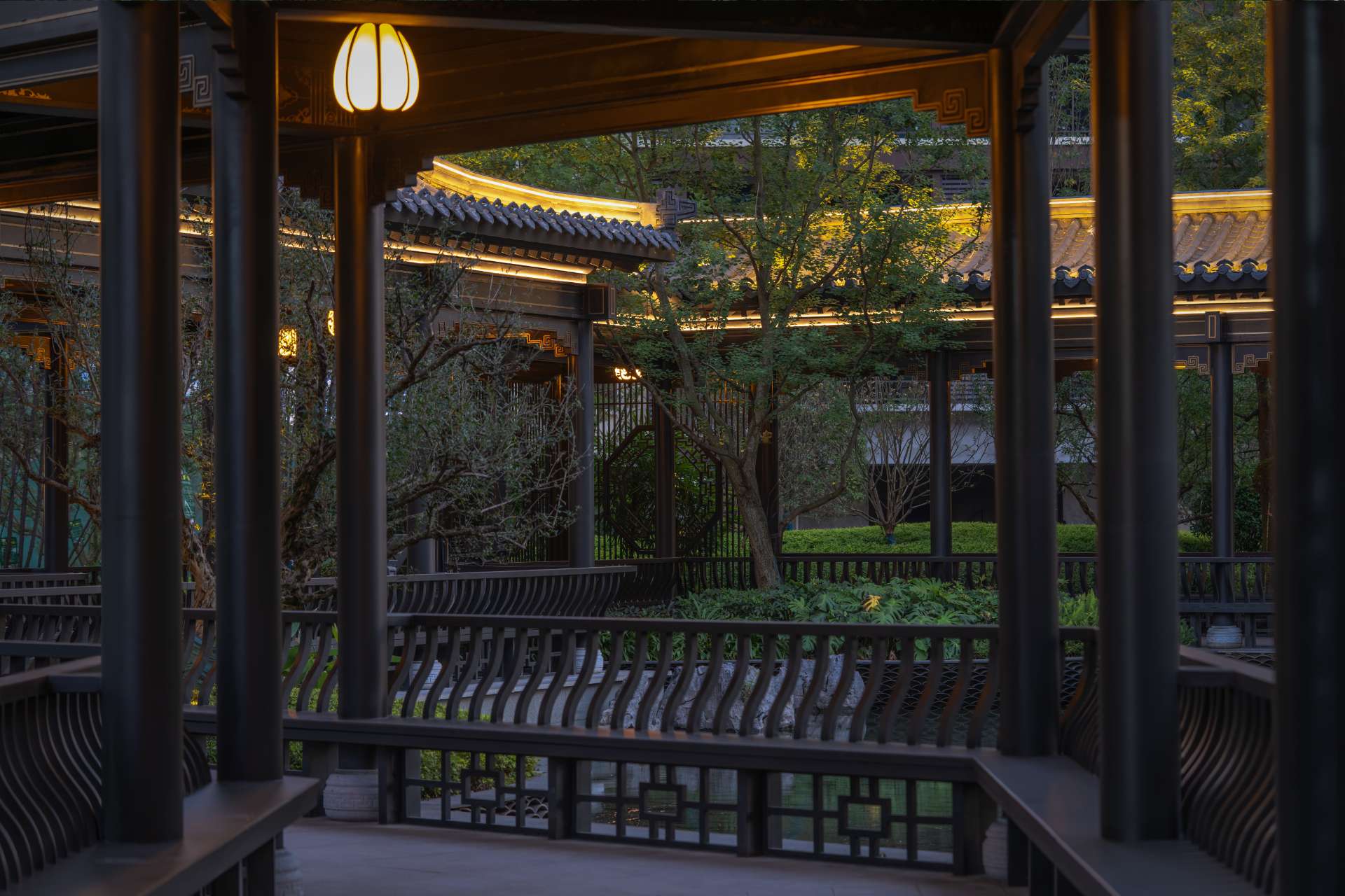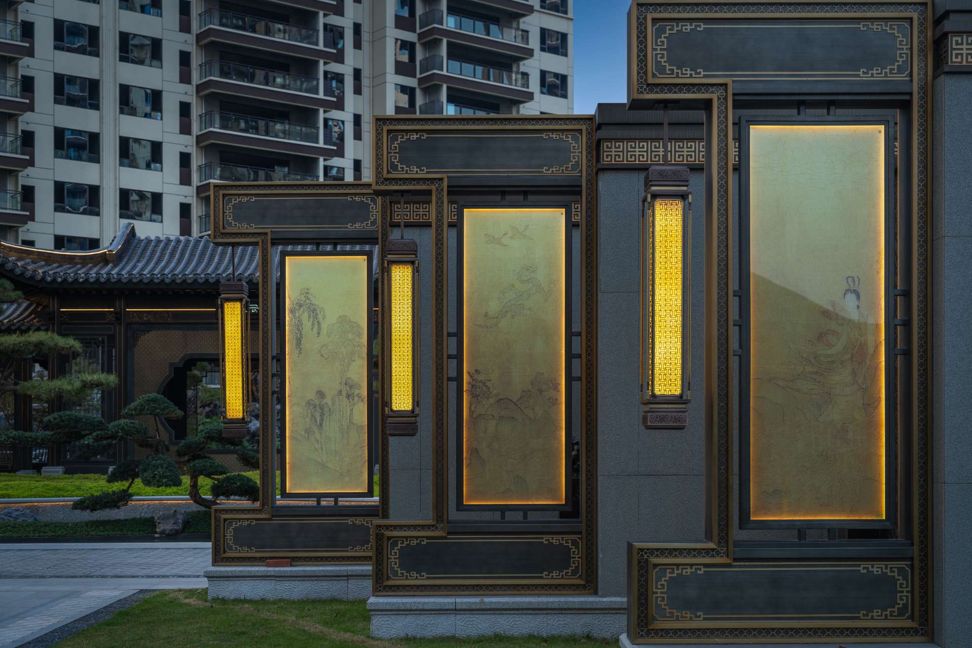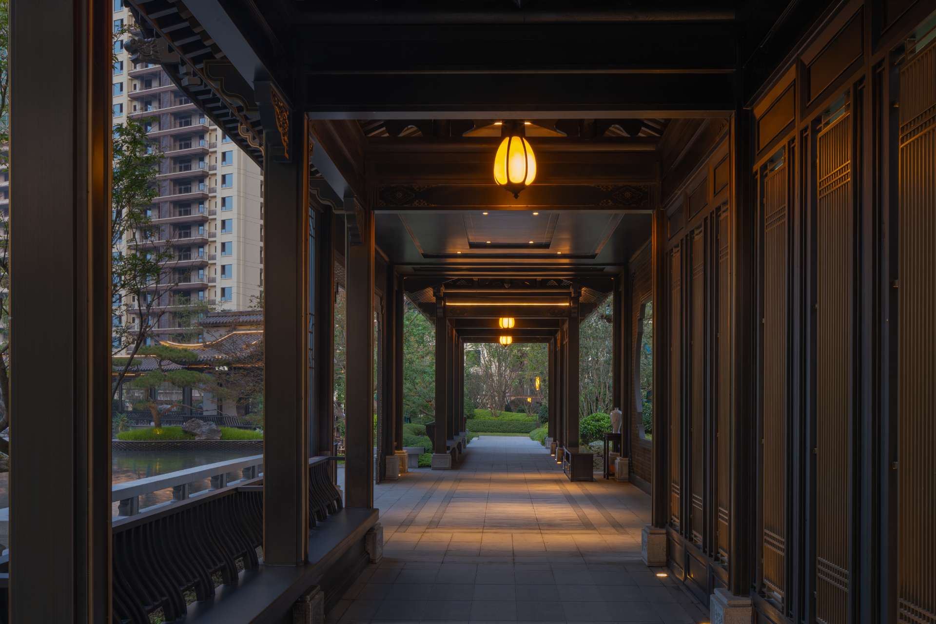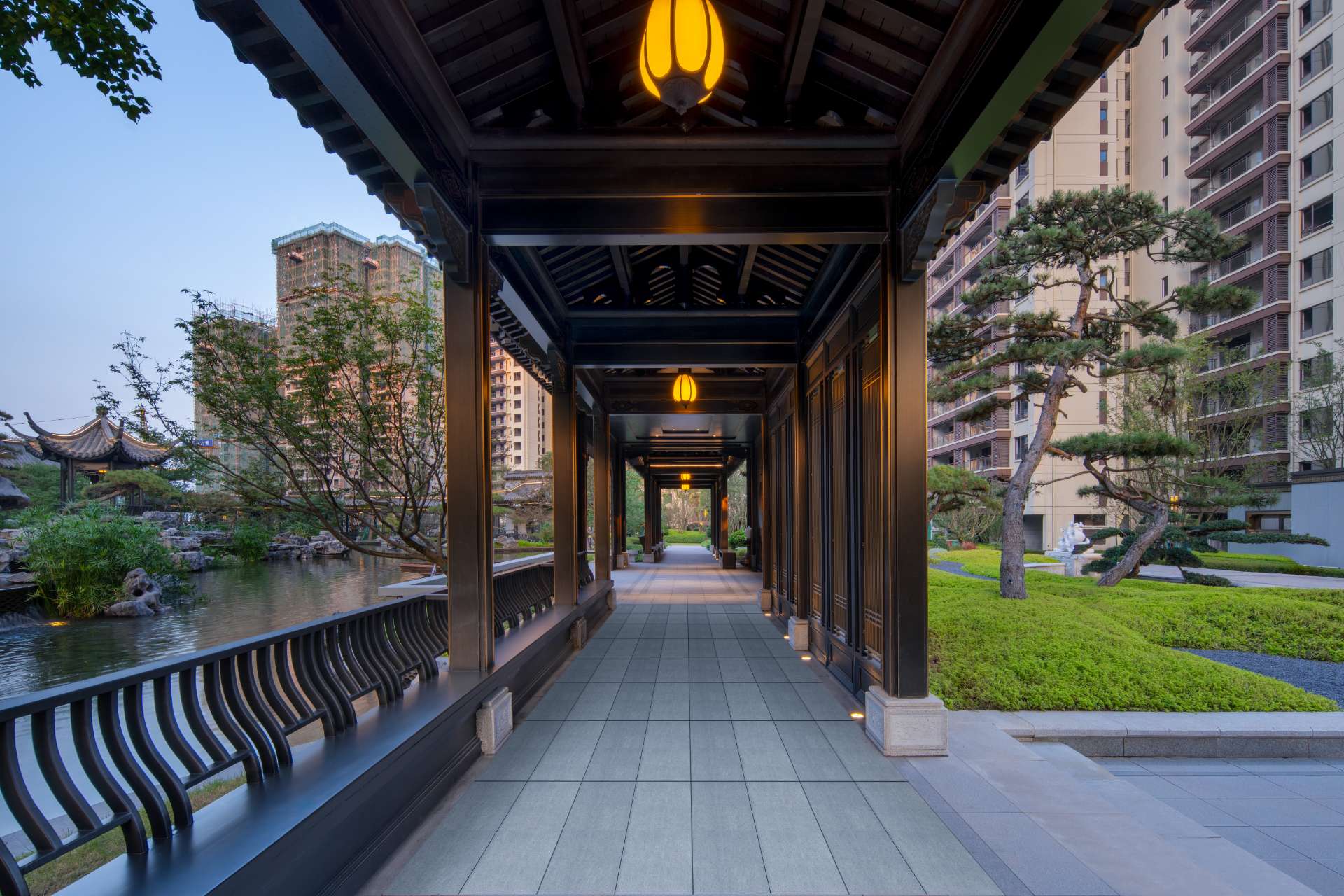 项目位于四川·自贡沿滩新城核心区——沿滩新城两湖大桥旁,是依托自贡百年盐商府邸“王家大院”打造的王家大院文化旅游综合体,规划有盐商文化公园、盐帮菜博物馆、风情商业街区、特色文创区、文化住宅和王家大院遗址六大板块。本次拟设计和呈现的是文化住宅板块。 王家大院是盐商王和甫弟兄5人为纪念父亲王子诚所建的私家府邸,谓曰“子诚公祠”,外人称之为“王家大院”,距今已有110多年历史。王家大院面西南而建,三面环山,一面迎水。院内保存有基本完好的石雕、木雕和灰雕作品600余件,是盐商历史遗存保留较好的院落。2020年5月,王家大院被自贡市人民政府公布为自贡市第一批井盐历史文化遗迹。文化底蕴深厚,王家大院承载的是盐商精神,展露的是第一部盐业的兴衰史。 结合王家大院“结庐在人境,而无车马喧”的儒商文化,以及客户需求,提取出府、苑文化。通过府(礼序空间结构)+苑(风雅生活场所),将现代设计手法与东方人文美学凝练于一院之中,营造出一座川南核心地域上的尊贵府园。 以府院建制格局、苑林生活场景为骨架,与中式园林、素雅审美相结合,打造五重归家礼序与风雅生活图景,尽享尊贵归家体验。