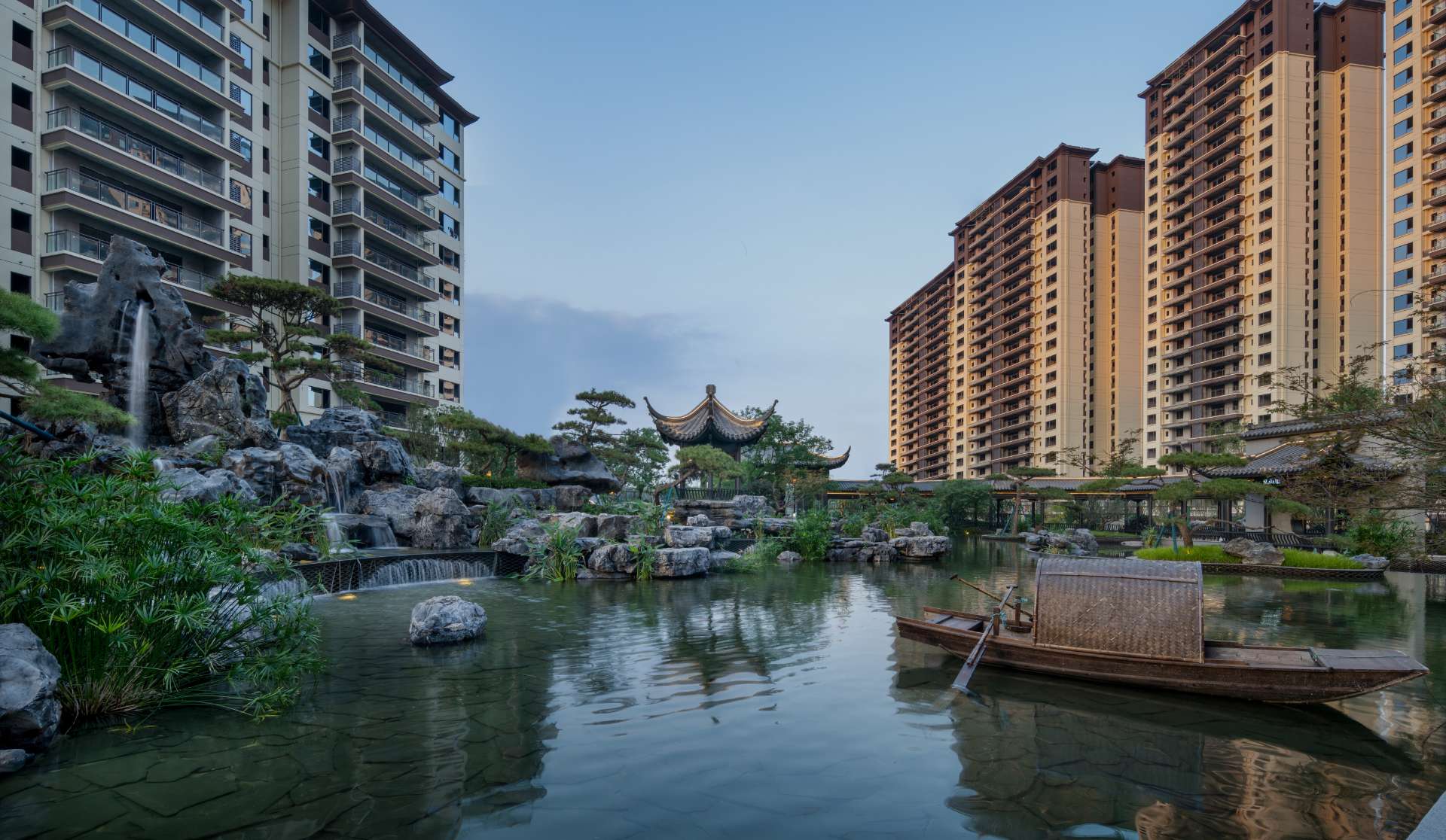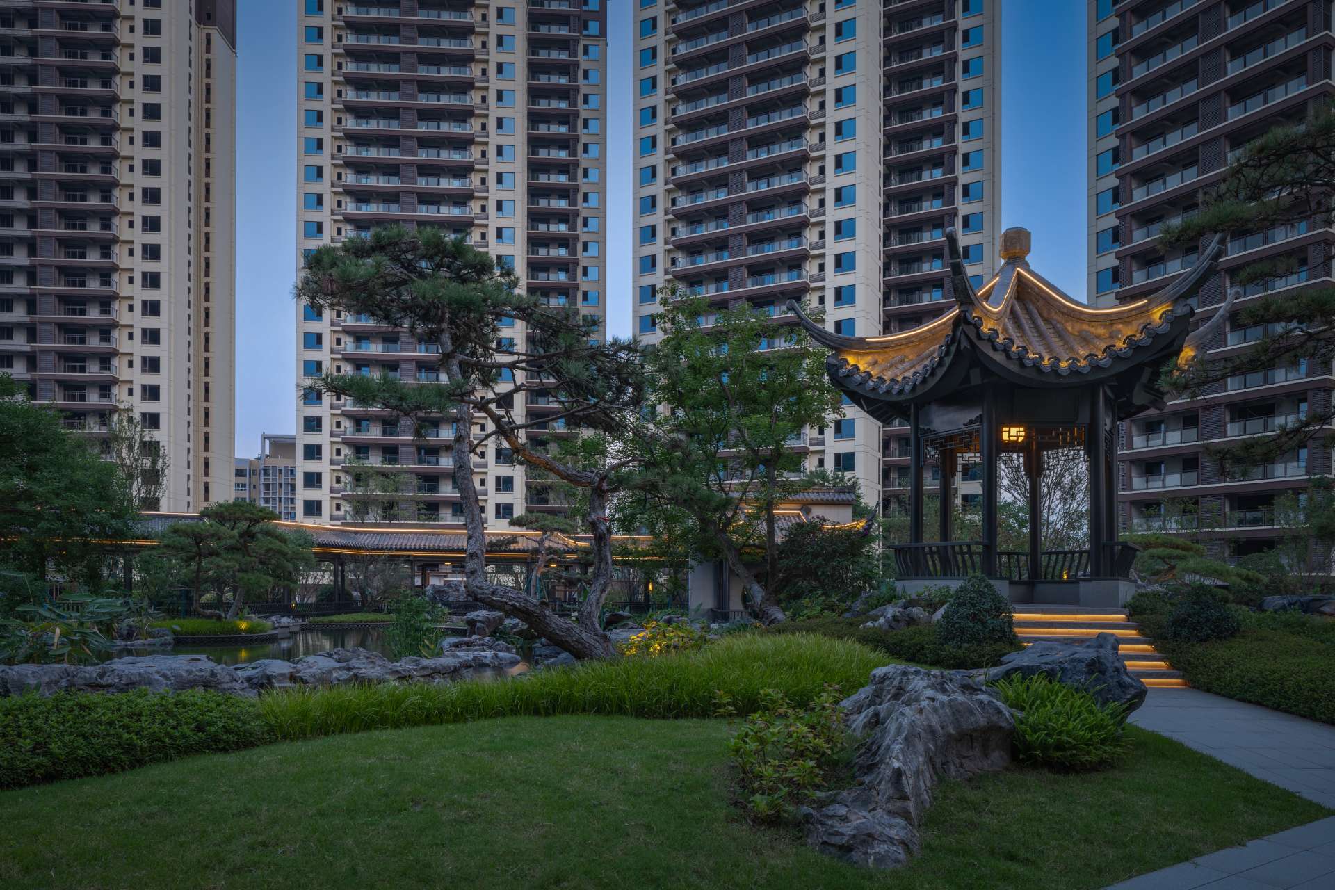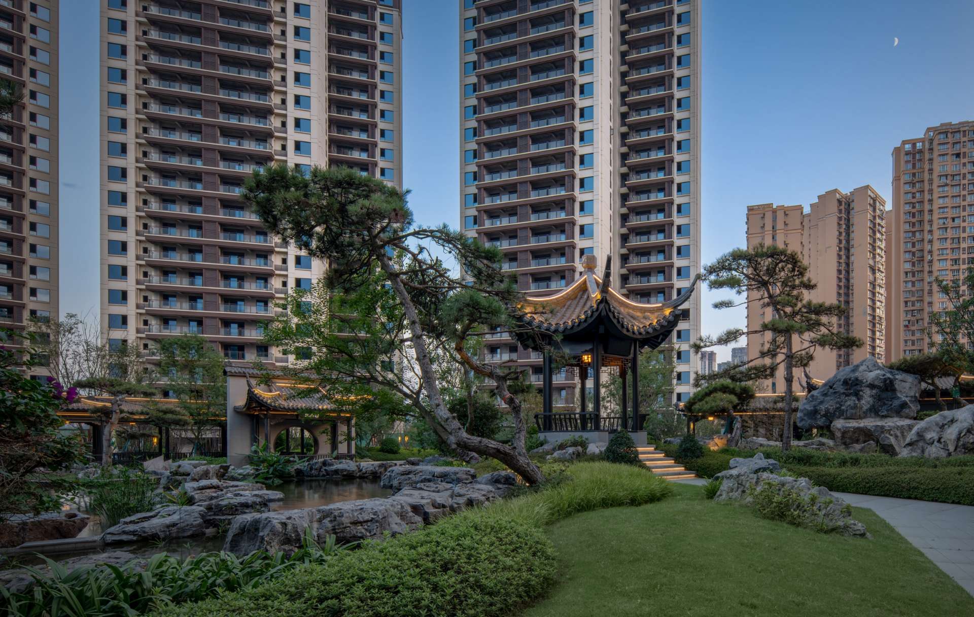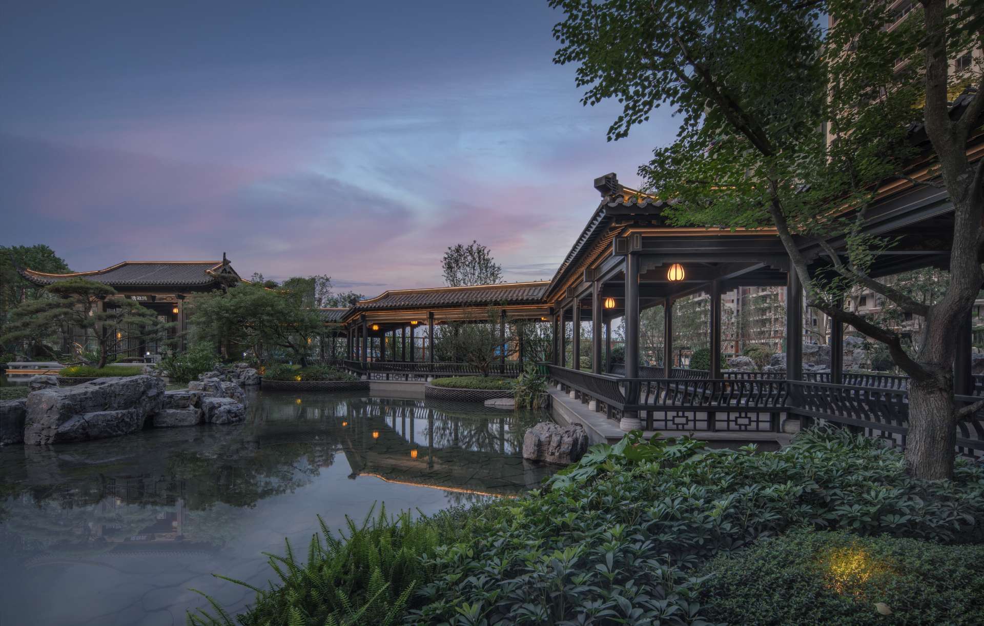 项目位于四川·自贡沿滩新城核心区——沿滩新城两湖大桥旁,是依托自贡百年盐商府邸“王家大院”打造的王家大院文化旅游综合体,规划有盐商文化公园、盐帮菜博物馆、风情商业街区、特色文创区、文化住宅和王家大院遗址六大板块。本次拟设计和呈现的是文化住宅板块。 王家大院是盐商王和甫弟兄5人为纪念父亲王子诚所建的私家府邸,谓曰“子诚公祠”,外人称之为“王家大院”,距今已有110多年历史。王家大院面西南而建,三面环山,一面迎水。院内保存有基本完好的石雕、木雕和灰雕作品600余件,是盐商历史遗存保留较好的院落。2020年5月,王家大院被自贡市人民政府公布为自贡市第一批井盐历史文化遗迹。文化底蕴深厚,王家大院承载的是盐商精神,展露的是第一部盐业的兴衰史。 结合王家大院“结庐在人境,而无车马喧”的儒商文化,以及客户需求,提取出府、苑文化。通过府(礼序空间结构)+苑(风雅生活场所),将现代设计手法与东方人文美学凝练于一院之中,营造出一座川南核心地域上的尊贵府园。 以府院建制格局、苑林生活场景为骨架,与中式园林、素雅审美相结合,打造五重归家礼序与风雅生活图景,尽享尊贵归家体验。