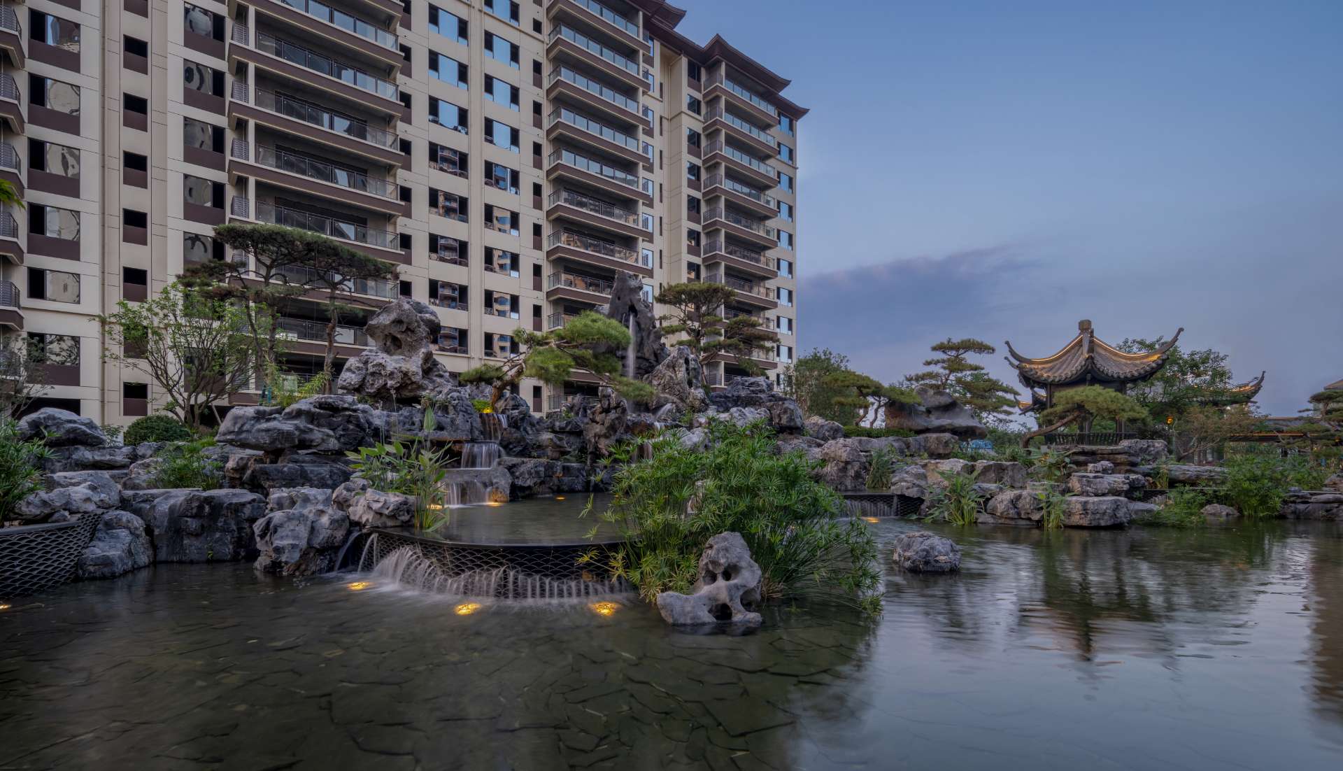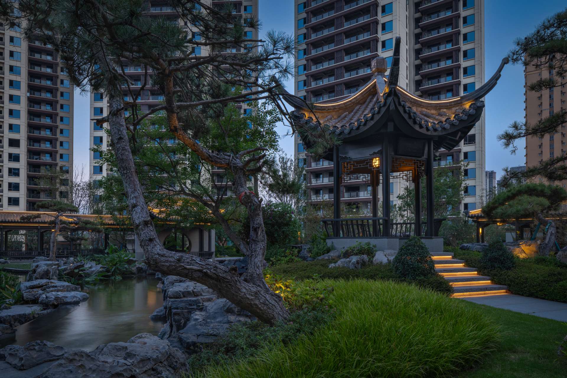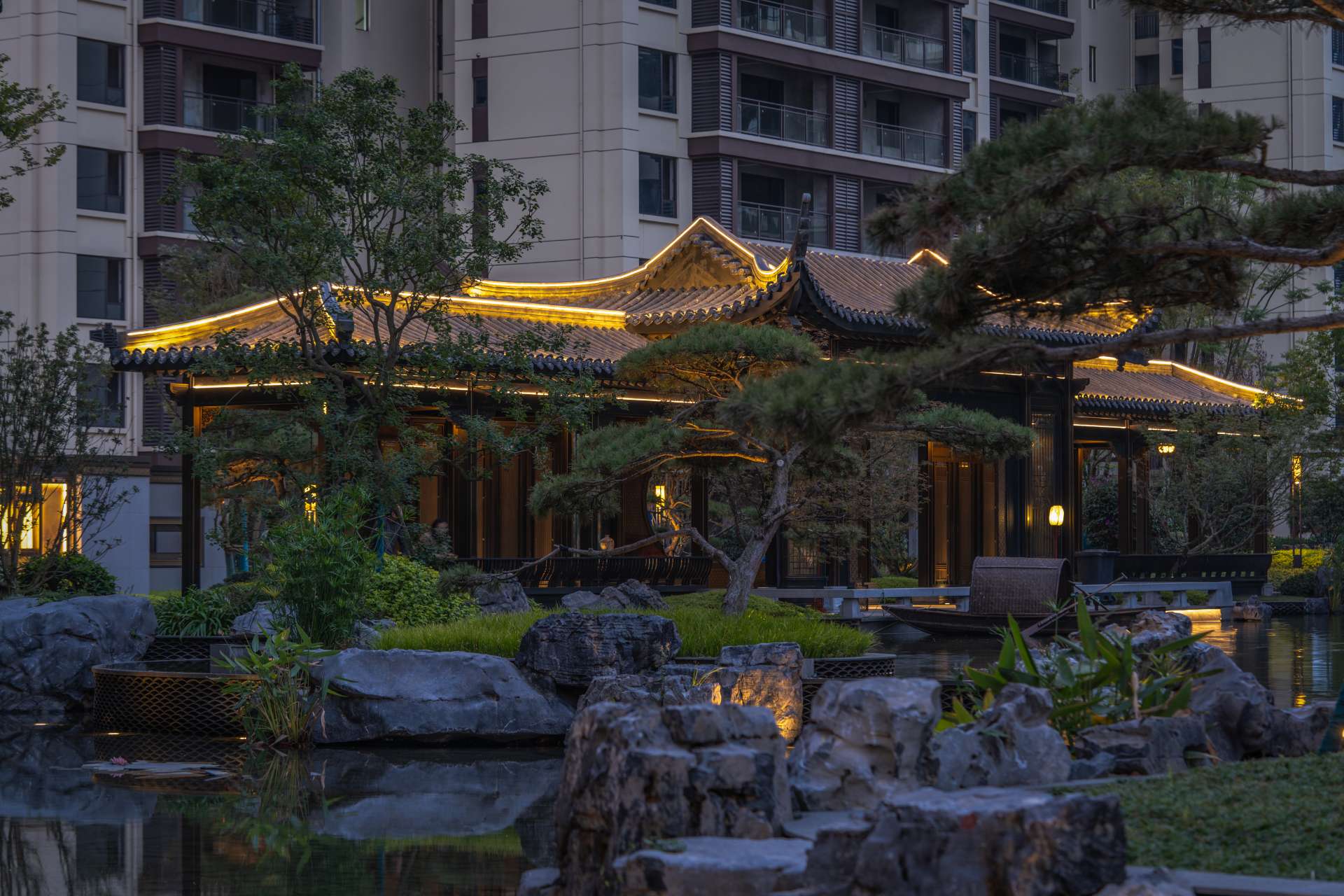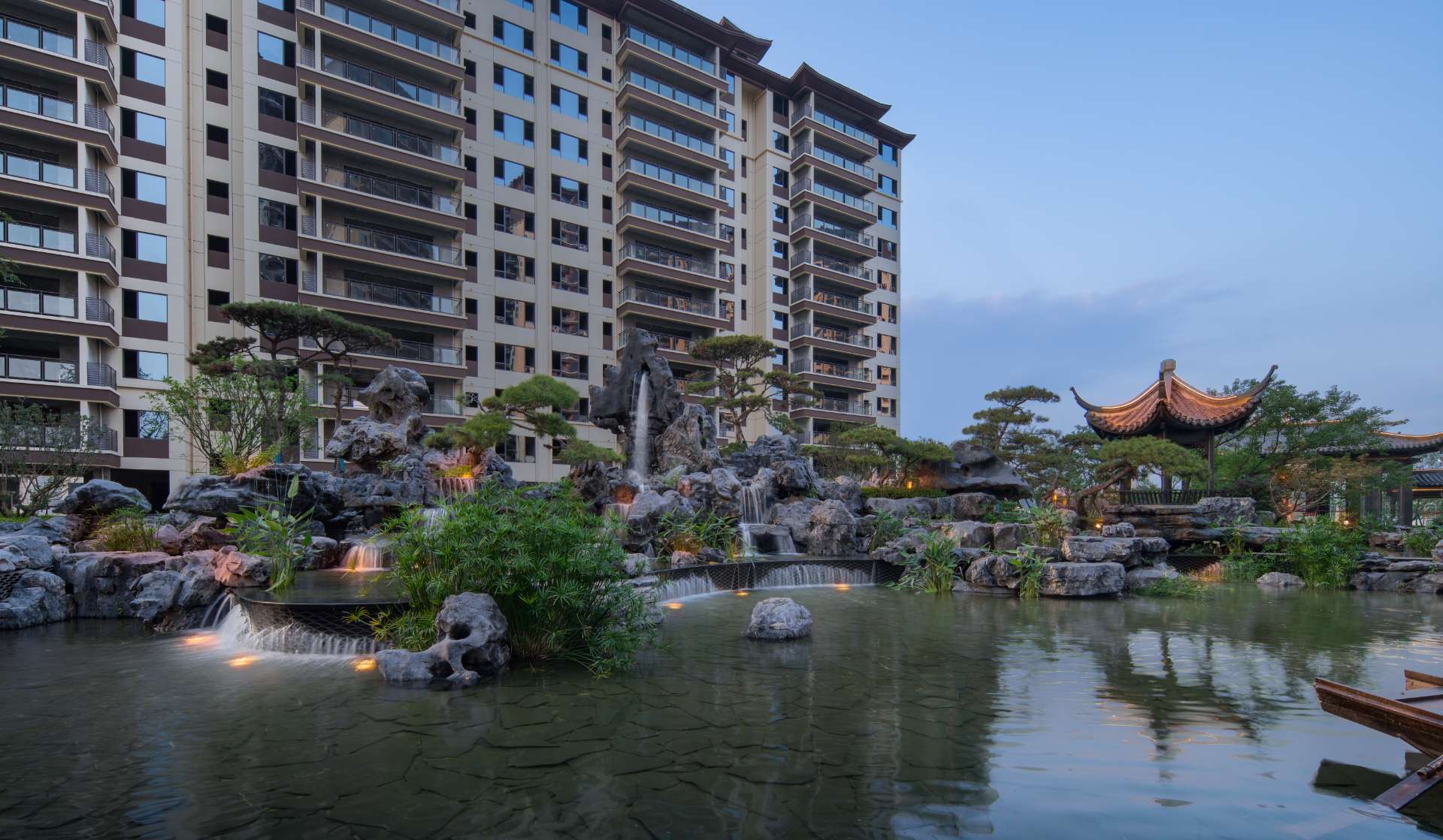 项目位于四川·自贡沿滩新城核心区——沿滩新城两湖大桥旁,是依托自贡百年盐商府邸“王家大院”打造的王家大院文化旅游综合体,规划有盐商文化公园、盐帮菜博物馆、风情商业街区、特色文创区、文化住宅和王家大院遗址六大板块。本次拟设计和呈现的是文化住宅板块。 王家大院是盐商王和甫弟兄5人为纪念父亲王子诚所建的私家府邸,谓曰“子诚公祠”,外人称之为“王家大院”,距今已有110多年历史。王家大院面西南而建,三面环山,一面迎水。院内保存有基本完好的石雕、木雕和灰雕作品600余件,是盐商历史遗存保留较好的院落。2020年5月,王家大院被自贡市人民政府公布为自贡市第一批井盐历史文化遗迹。文化底蕴深厚,王家大院承载的是盐商精神,展露的是第一部盐业的兴衰史。 结合王家大院“结庐在人境,而无车马喧”的儒商文化,以及客户需求,提取出府、苑文化。通过府(礼序空间结构)+苑(风雅生活场所),将现代设计手法与东方人文美学凝练于一院之中,营造出一座川南核心地域上的尊贵府园。 以府院建制格局、苑林生活场景为骨架,与中式园林、素雅审美相结合,打造五重归家礼序与风雅生活图景,尽享尊贵归家体验。