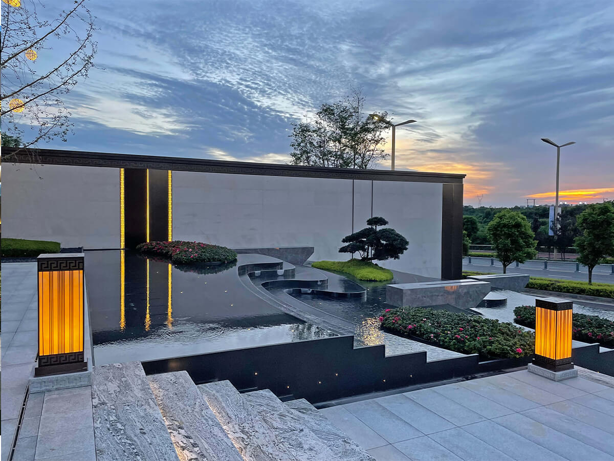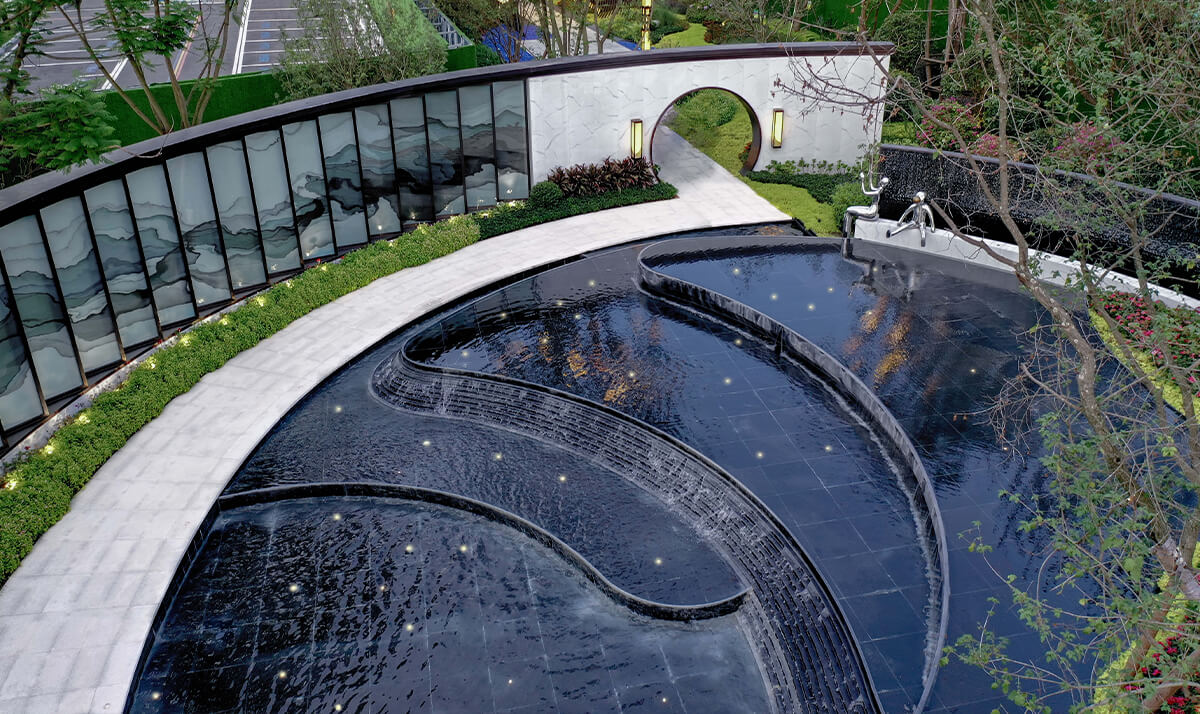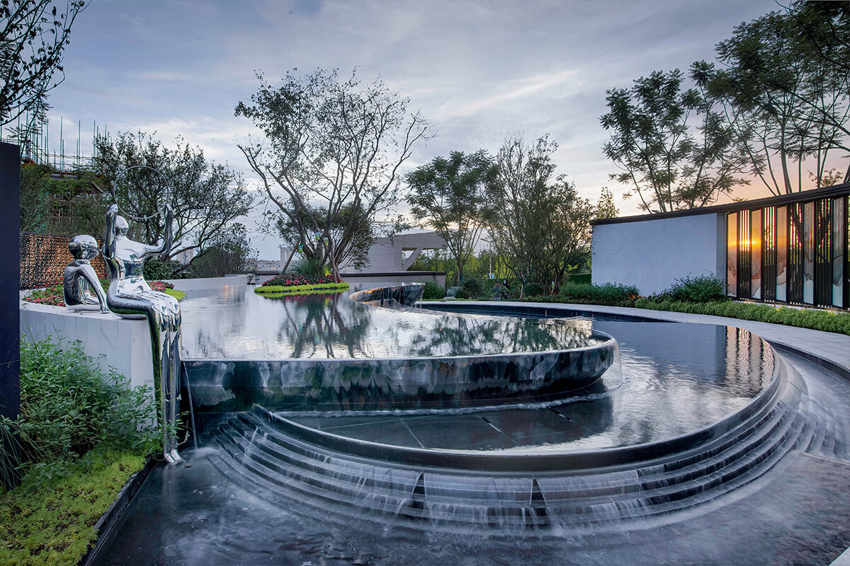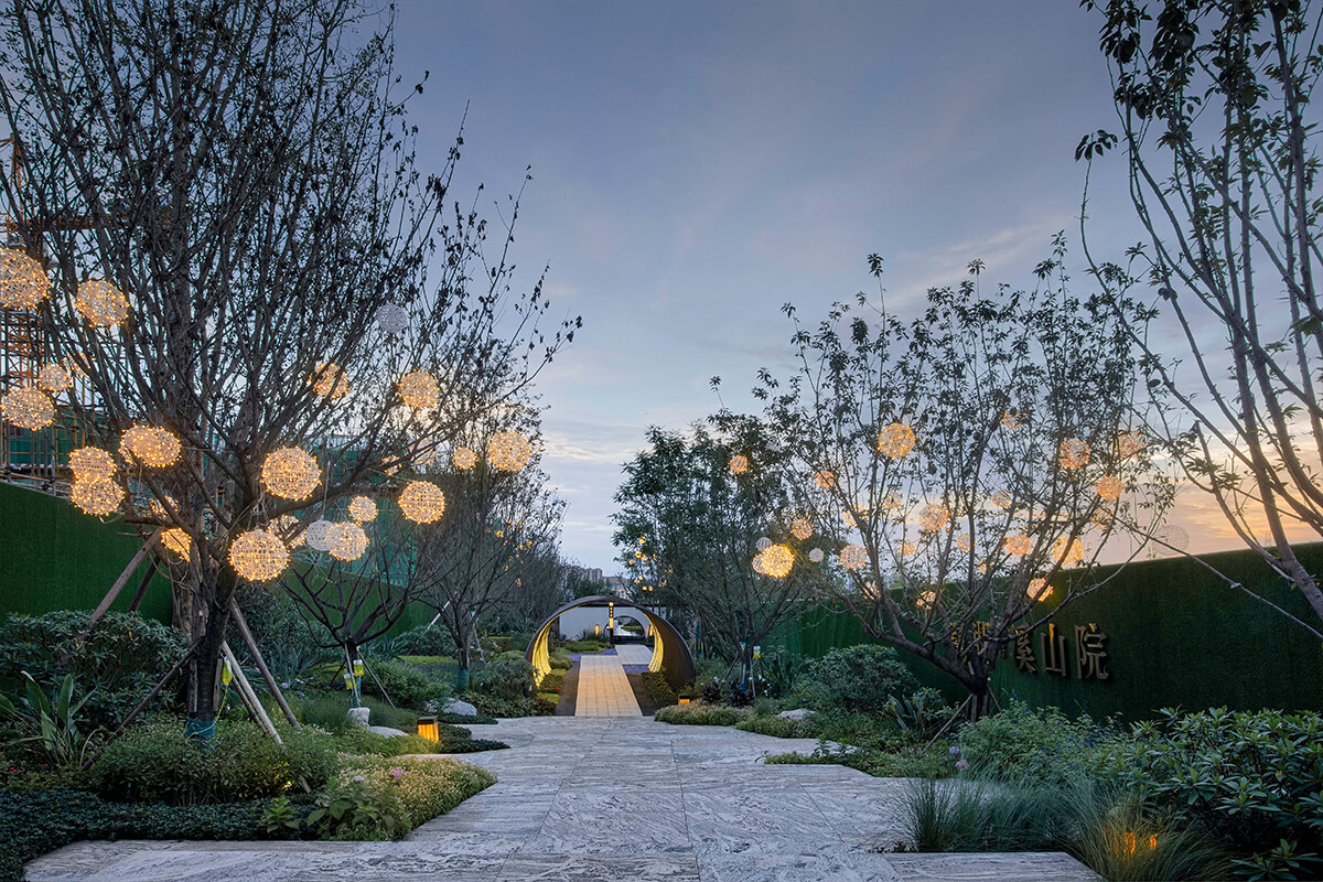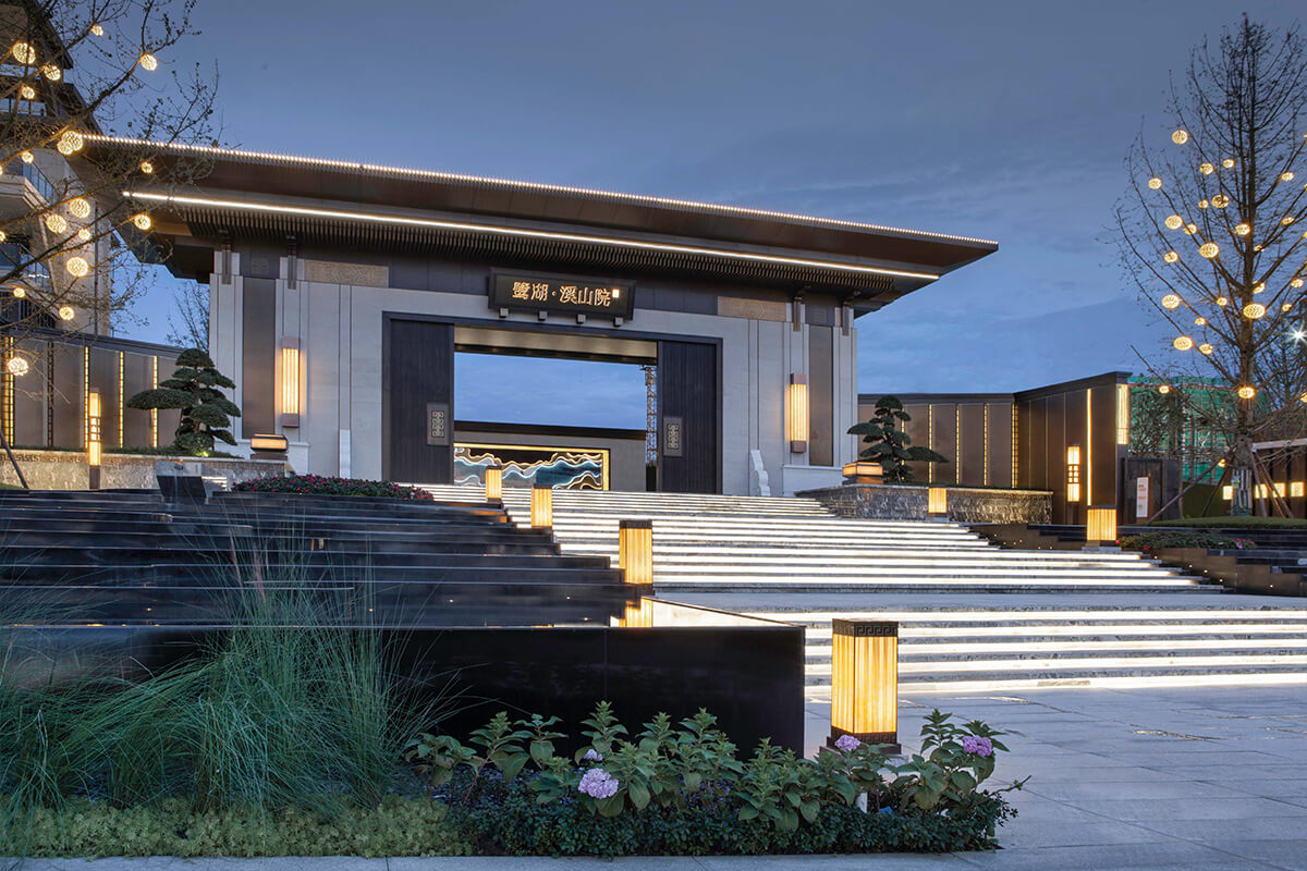 项目名称:鹭湖·溪山院 Project name: Luhu · Xishan Courtyard 项目地点:四川省眉山市 Location: Meishan city, Sichuan Province 景观设计:成都凡美园林景观设计有限公司 Landscape Design: Chengdu Fanmei Landscape Design Co., LTD 委托业主:眉山鹭湖众城置业有限公司 Entrusted owner: Meishan Luhu Zhongcheng Real Estate Co., LTD