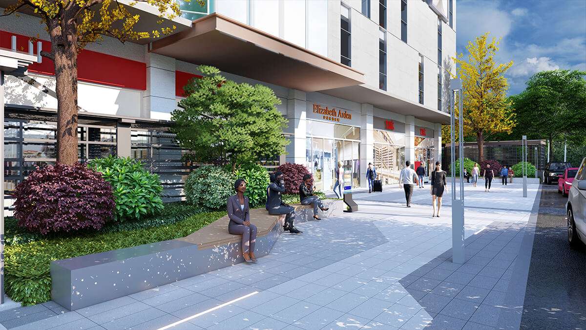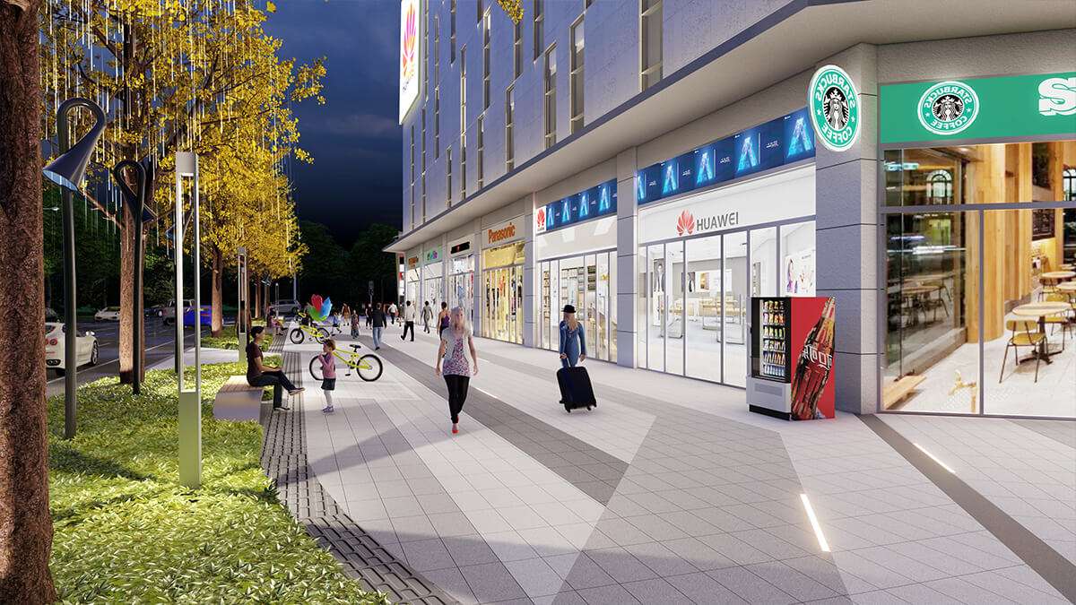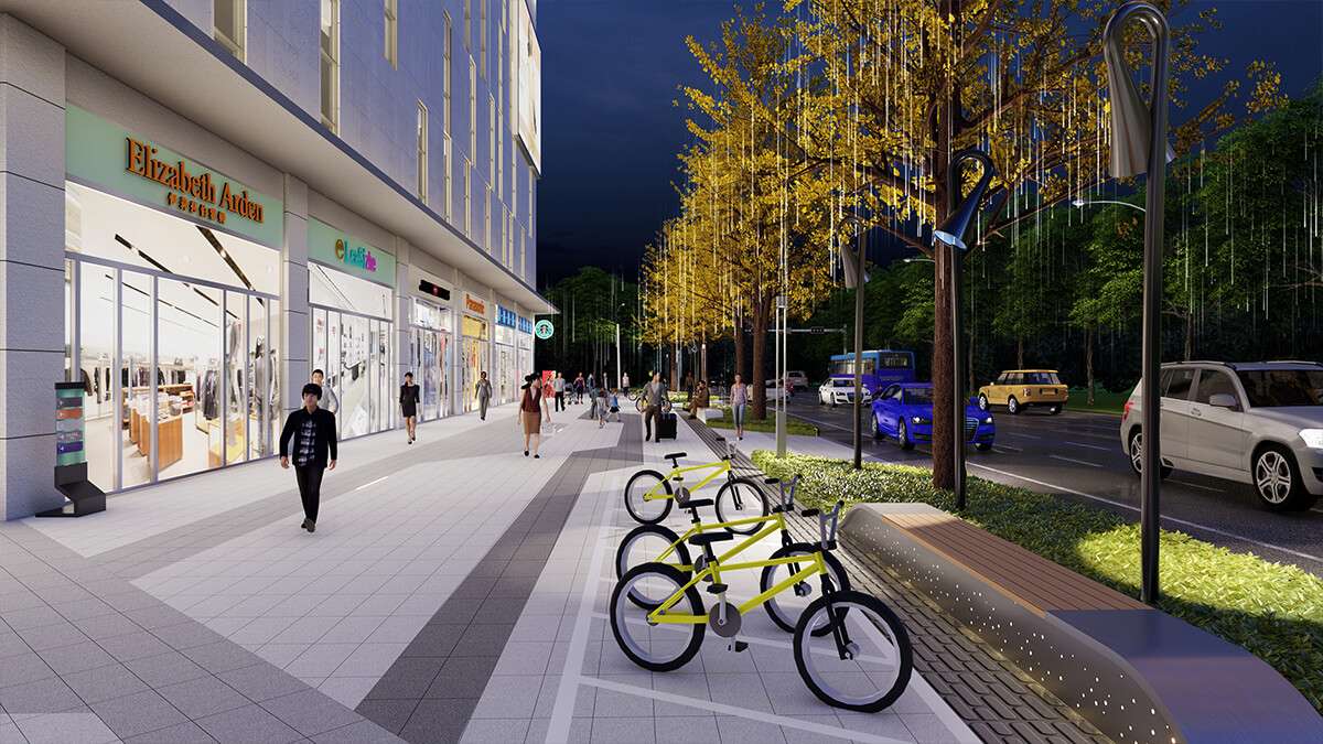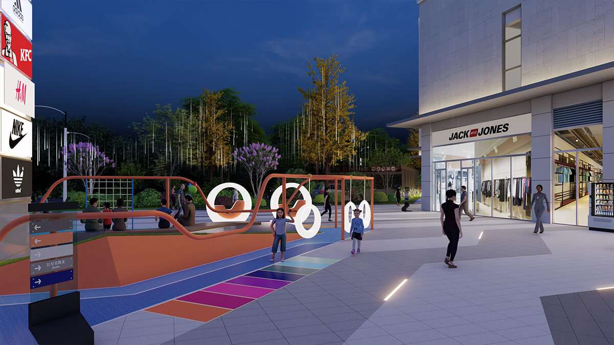 诗中有画,画中有景,景中含意。提取洪雅的山和水元素,以线的表达方式,打造现代商业景观意境空间。 商业街绿色景观设计是自然环境和人为设计规划的一种创造和有机结合,是自然生态景观在商业街道的再 现和提炼,是城市道路规划设计的一个缩影,是展示城市形象、文化和意境的一个窗口,因此商业街绿色景观 设计应难满足现代化城市道路设计的功能性、生态性、融合性等要求,优化绿色景观设计,种植合适的花卉和 绿色植物,为人们提供一个现代、 自然、人性、全龄的休闲娱乐环境。
